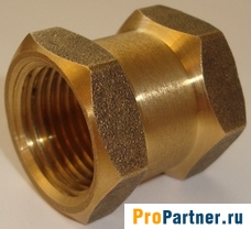 Лучше бронзовая муфта Viega старого образца со сквозной резьбой.