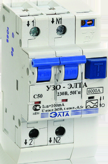 Электронная схема расположена в накладке справа, при этом ее расцепитель расположен на месте катушки электромагнитного расцепителя в нулевом проводнике. Тепловая зашита в нулевом проводнике также отсутствует.
