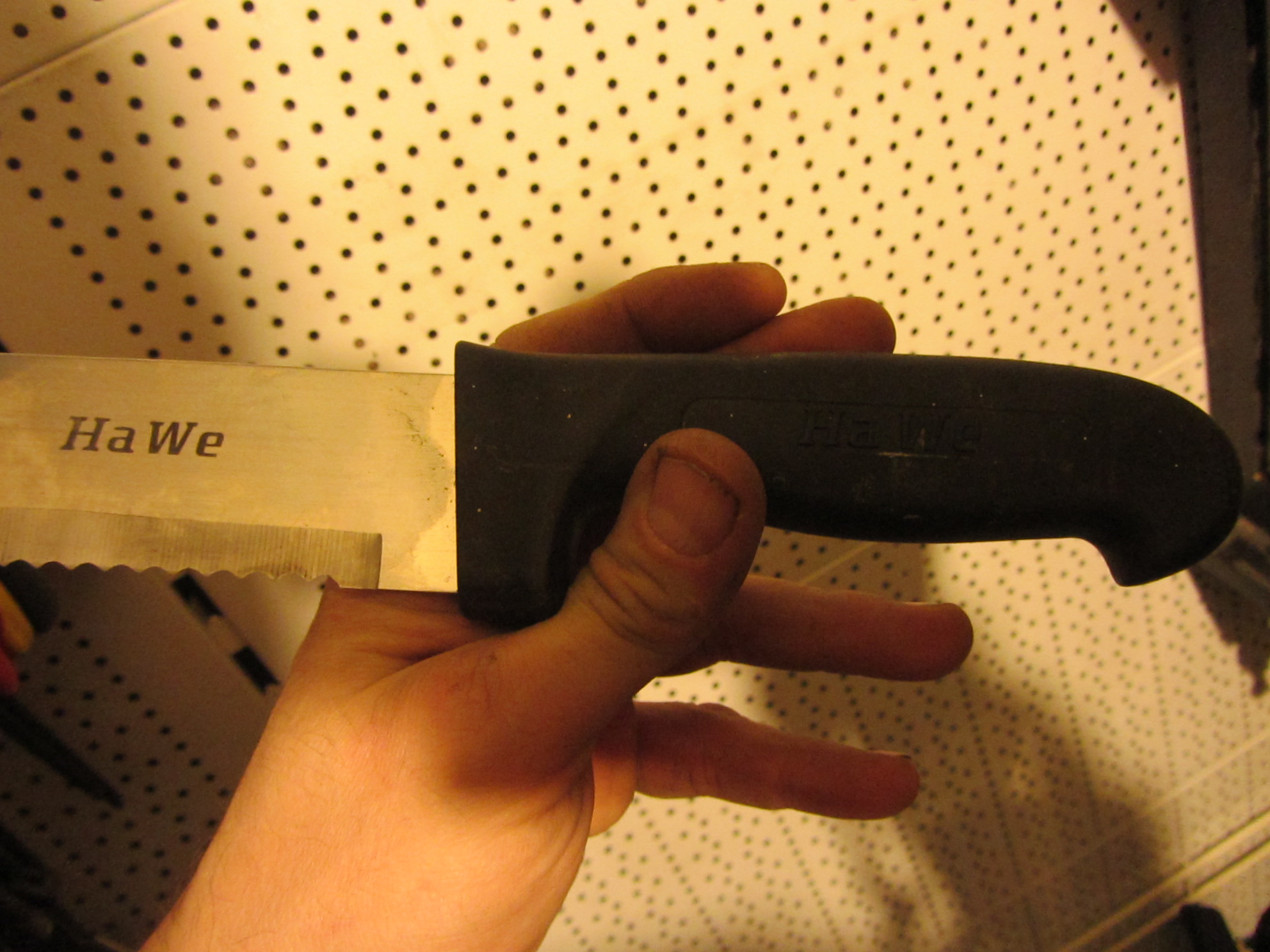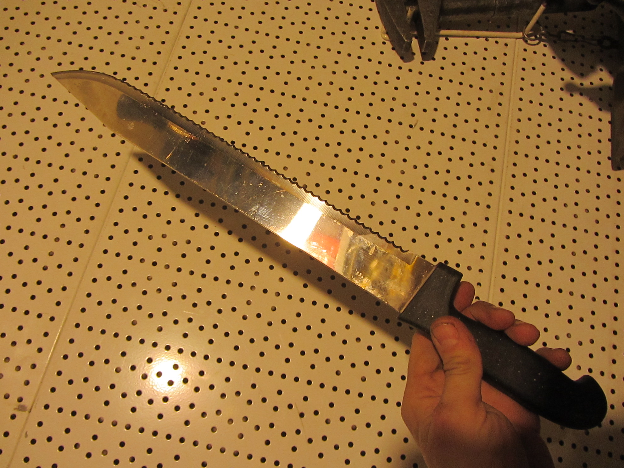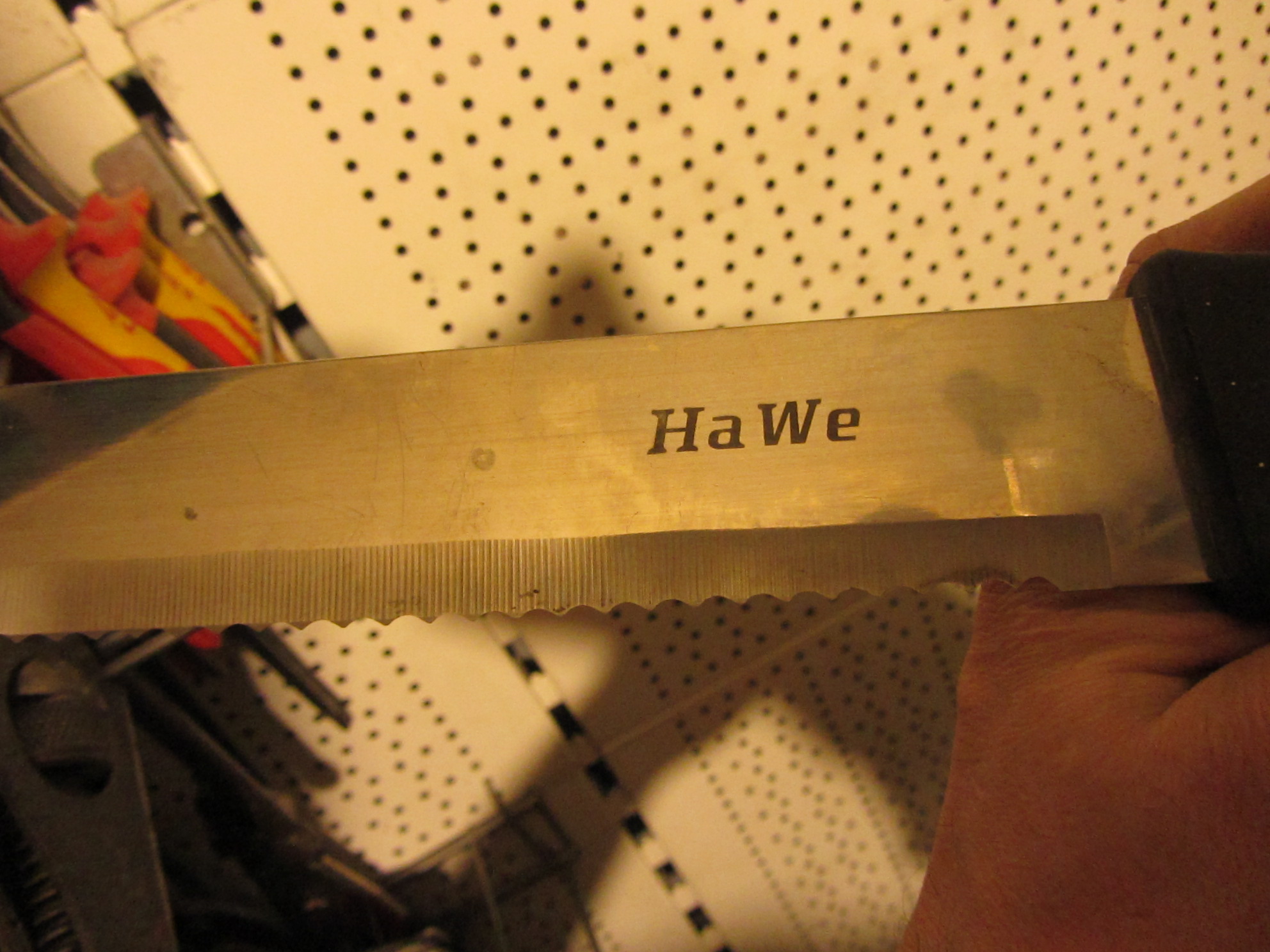 Коллега похвастался трофеями и тут вываливает фотку, - спрашивает меня, что за странный нож, может - мачете какое? А это как раз резак для теплоизоляций всяких, хочешь плекс режь, хочешь флекс, тилит, ну и прочие производные вспененного полистирола и полиэтилена, да и минвату тоже могёт... За счет формы зубчиков, такой резак практически не дает опилок, а это весьма большой плюс, попробуй раскрои пилой кусок пенопласта, везде сразу будут шарики от него, которые норовят прилипнуть при малейшей статике. - Мерзость та еще. Коллега с изоляциями не связывается, не царское это дело, вот сварить чего-нить, это по нему. Ну и уступил мне этот "ножичек". Я теперь с удовольствием порилекс и тилит им крошу, раньше гроссовской пираньей кроил, но с ней чуть зазеваешься и вот уже кровавое жертвоприношение сделал, - руки, ножовки с 3D-заточкой режут только так. А эта дурында режет только изоляцию, по сравнению с пираньей, там и форма зубчиков другая, да и заточка не такая травмоопасная.