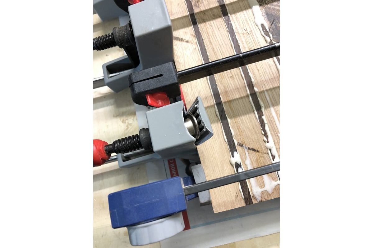 Пластик не продавливает пласть,и,фактически,слегка меняет угол,под нагрузкой.Тем самым прижимает детали к шине,что исключает перекос рамки.