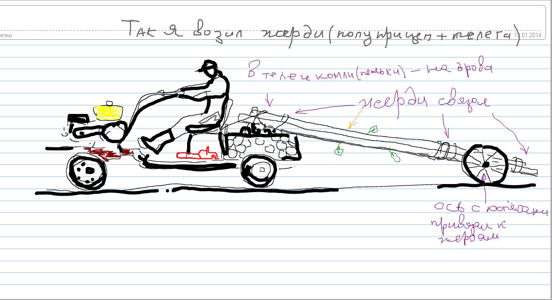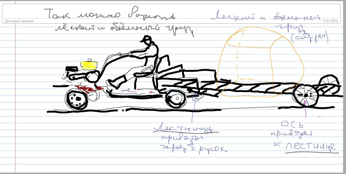 Дарю ИМ ещё идею - мотоблок с тележкой: перевозка лёгких и больших объёмов по участку - лестница + ось с колёсами.