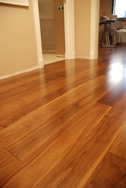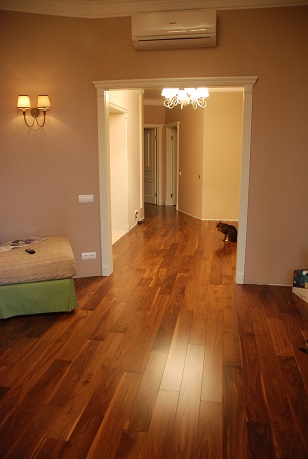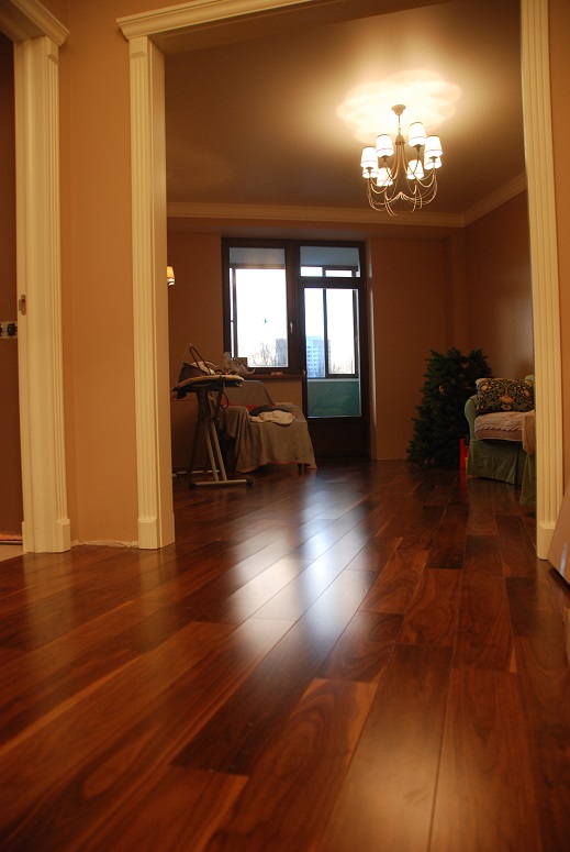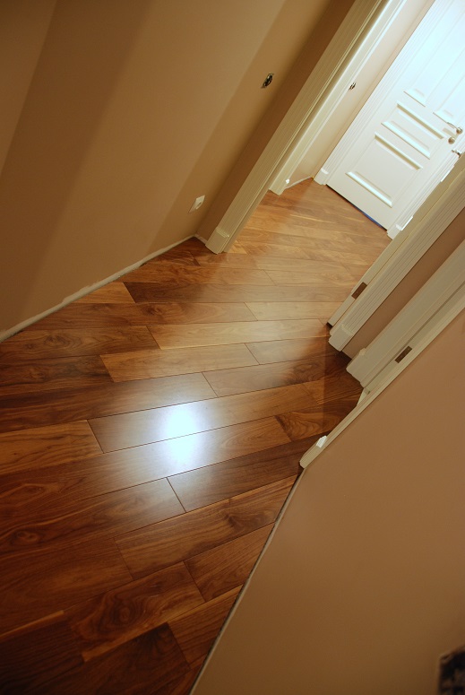 Фото с последнего объекта. Инженерная доска. Сорт НАТУР. ширина 130 мм. толщина 20 мм. длина до 1500 мм. Под лаком полумат. ОРЕХ АМЕРИКАНСКИЙ стоимость доски - 3500 руб. за кв.м. укладка на фанеру. стоимость укладки "под ключ" около 2200 Трехслойная доска, где два нижних слоя из дуба, а верхний 6,5 мм - орех.