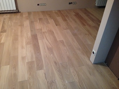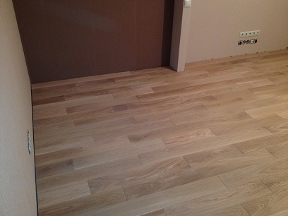 Во! Вот правильная цена правильной укладки "инженерной доски". Выходит очень даже не маленькая циферка: раз в семь дороже укладки ПД плавающим способом. За такие деньги (3500+2200р), кстати. можно было поверх фанеры и массивную доску настелить... Меня кстати, доска шириной всего 130мм с фасками (и заметными на фото 3 стыками 130мм поперёк соседних досок) не особо торкает