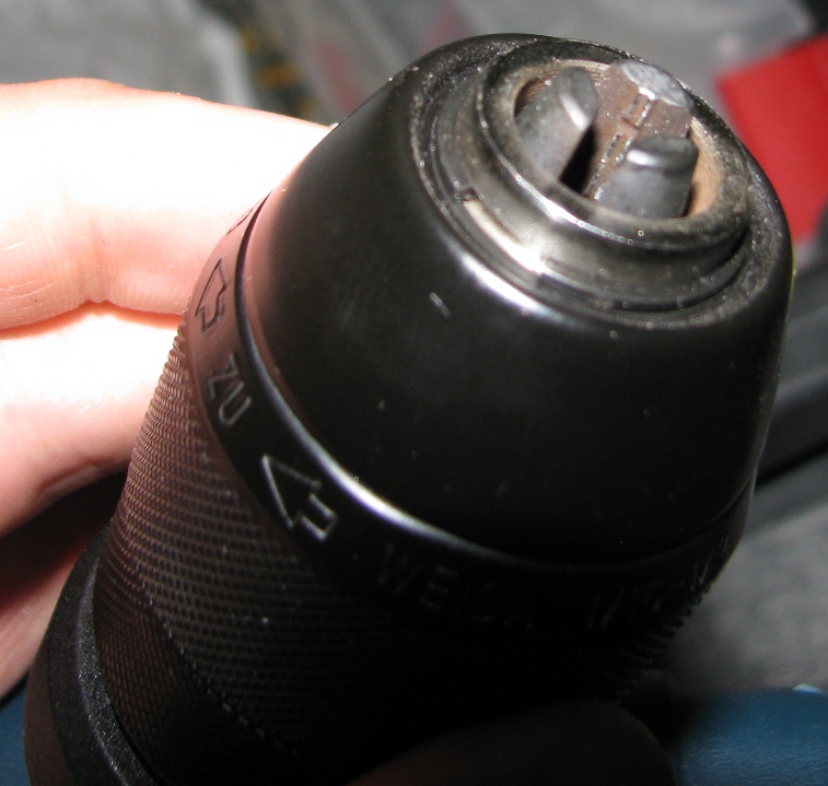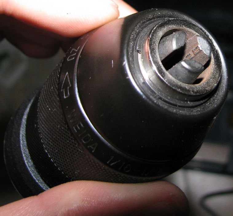 В субботу пробовал патрон вейдовский, нужно было перевесить кухонные ящики, (фотки не делал) нужно было просверлить отверстия в профильной трубе 40х20х2 сверлом 6,6мм. Просверлил без проблем. А, да, смазал патрон, ту часть, которая в перфоратор вставляется смазкой ЦИАТИМ - 221. Ящики перевешивал на болты 6мм, в ушки крепления болт не влазил (6х140), нужно было рассверлить ушки крепления, сверлом 6,6мм, металл ушек вязкий и при попытке рассверлить, сверло закусывало. Несколько раз сверло, при закусывании, провернуло в патроне, практически на каждом ушке, шлицы в патроне на губках, слегка шлифануло, но, не срезало. Сверло было качественное с завода 20 летней давности, надпись диаметра сверла выполнено гравировкой. Металл со сверла не сняло. В общем, патрон понравился, когда закручиваешь до упора, раздаётся щелчок, как будто внутри срабатывает какой-то замок, далее на каждый поворот, поворот буквально на несколько миллиметров, раздаётся какой-то щелчок и патрон затягивает сверло все сильней. Возможно не сильно затянул сверло в патроне, так как опыта работы с таким типом ни какого, раньше на патроне – самозажимном затягивал до щелчка и все, дальше не крутил (дрель НППК МЭС-550ЭРУ), а здесь докручивал еще на несколько щелчков, но не до посинения.