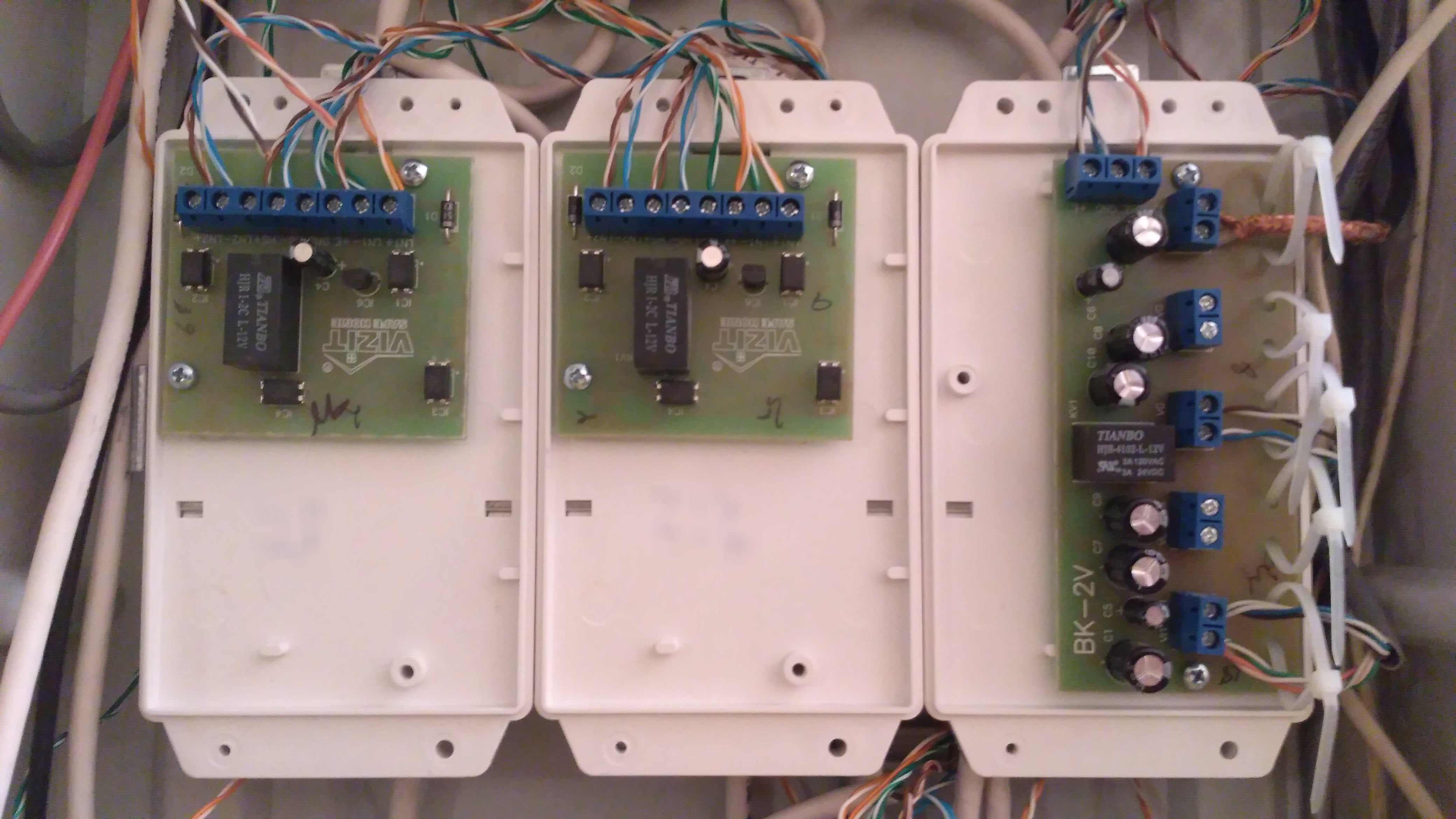 Кроме того, не смог понять что это за маленькие платы - их количество равно количеству квартир на этаже? коммутируются ли они с ВК-4MV.