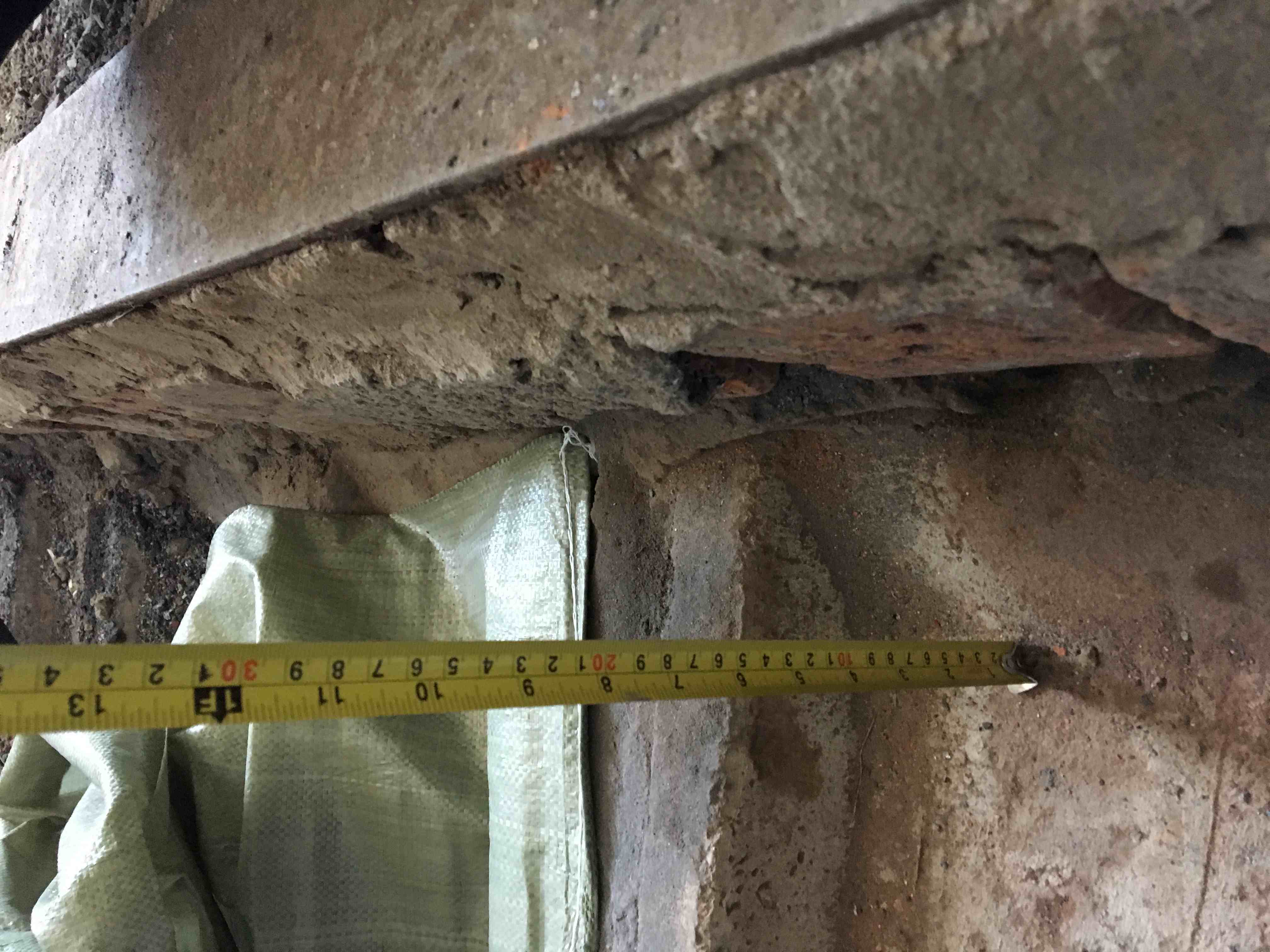 Двутавр над дном корыта выпирает в среднем на 30 см.