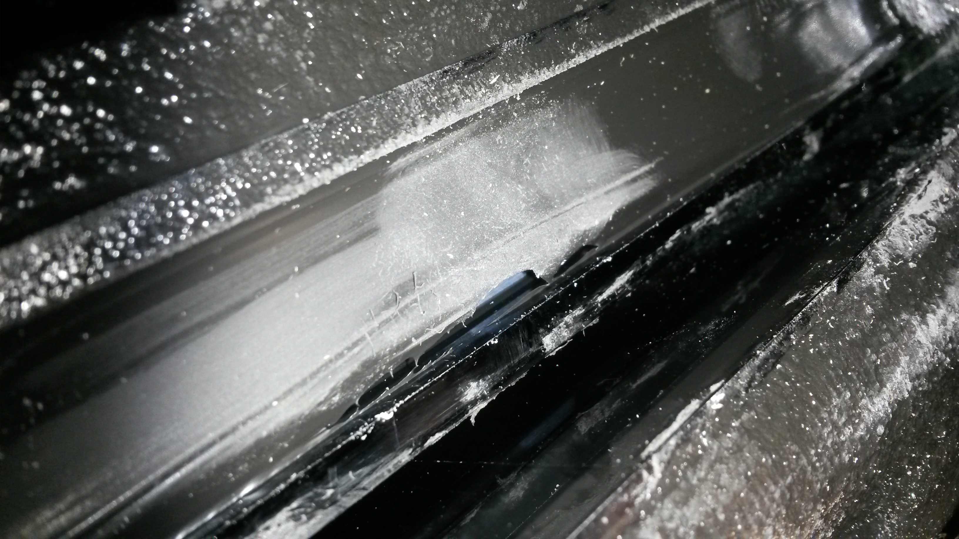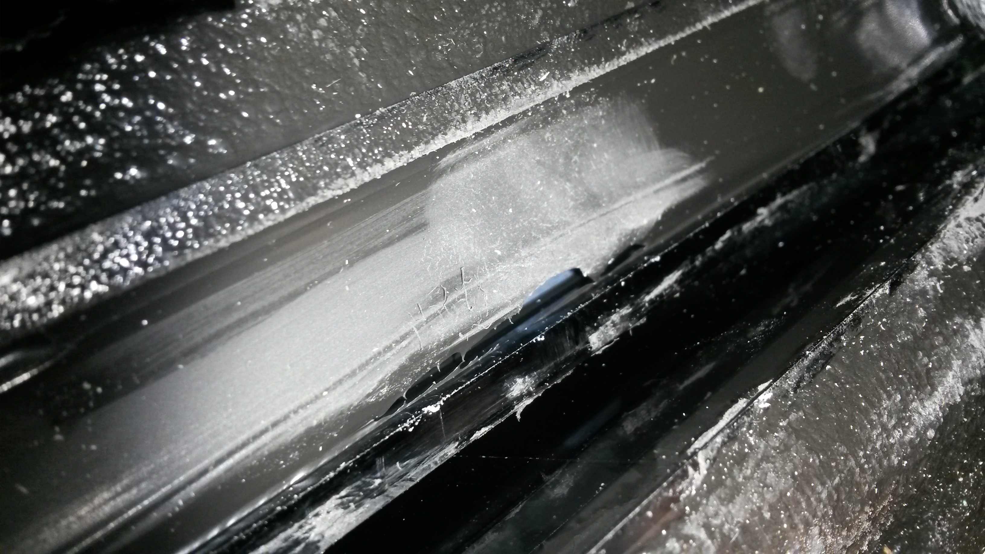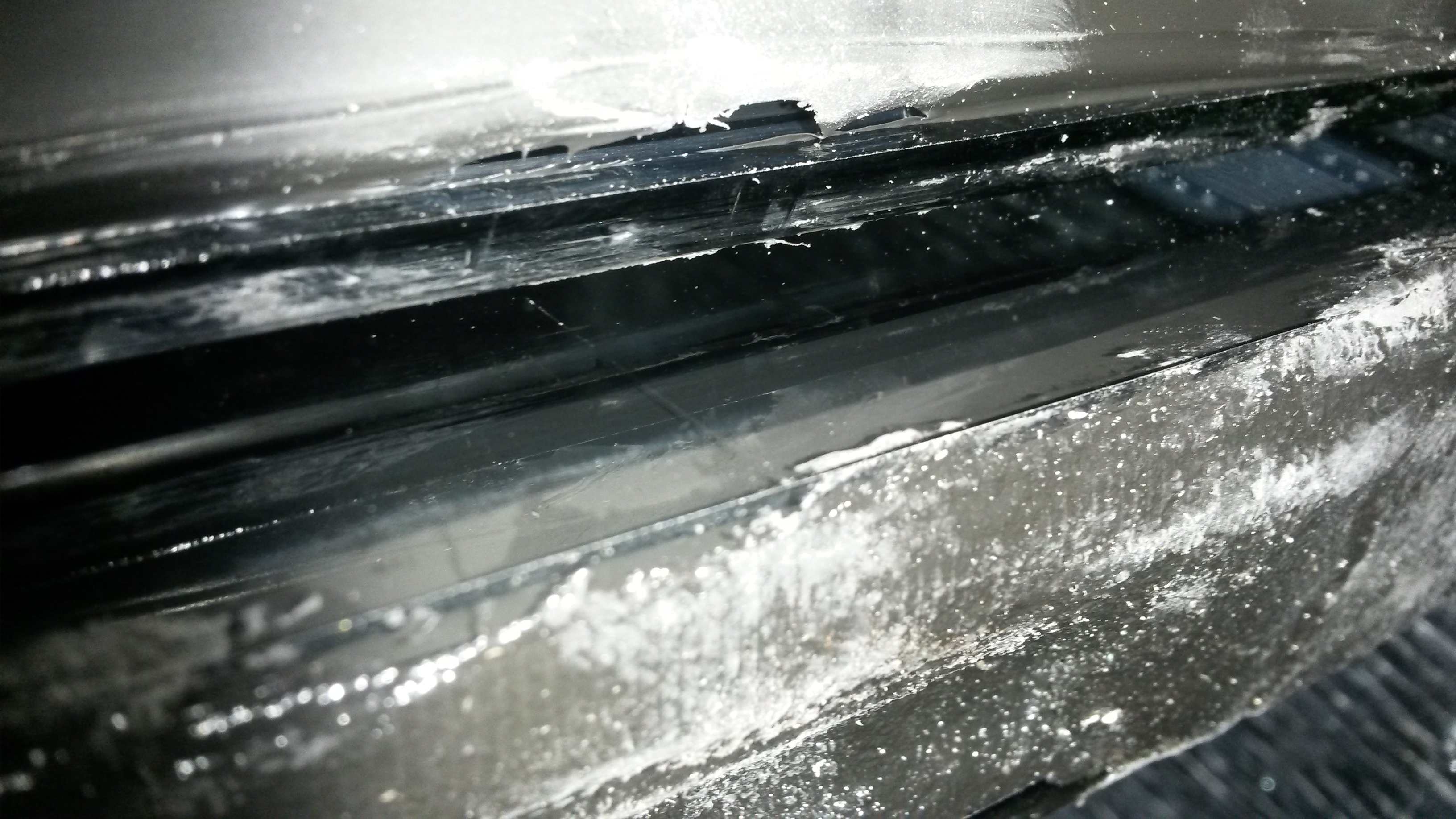 2) На другом стеклопакете обнаружил царапину. На фото видно. Длиной 30-40 см. Царапина неглубокая, едва ощущается ногтем. Если дело только в эстетике, оставлю. Не факт, что поцарапали грузчики. Поставлю царапиной вверх, там ее вообще не видно будет. Волнует только не лопнет ли зимой.