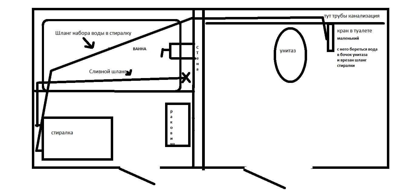Здравствуйте, прошу помощи , купил стиральную машину Bosch WAN28290OE, возникла проблема подключении ее к водоснабжению , дело в том что в ней стоит система аквастоп вот как выглядит шланг, обведенное красным это шланг забора воды, на нем сам аквастоп и металлическая резьба, до этого стояла стиральная машина подключена по такой схеме как смог так нарисовал ) вот таким шлангом длинным, прямо с крана туалета, возникает вопрос как подключить боша к воде, каким то переходником можно соединить длинный шланг с туалета в шланг самого боша, на стирке шланги родные они не откручиваются оба что слив что набор