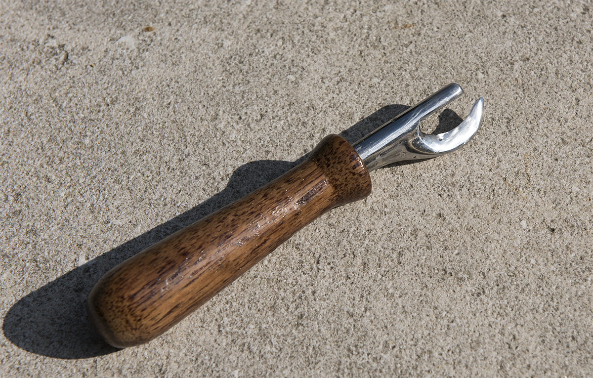 В процессе изготовления очередной оснастки возникла потребность укоротить сверло (15мм), китайское и ни разу не быстрорез. Что бы оно сверлило - его пришлось калить (что довольно странно). Отрезанный кусочек сверла было очень жалко выкидывать (неплохая сталь, легко калится) и подвергнув его отжигу и ковке - превратила его в пластину для консервного ножа.