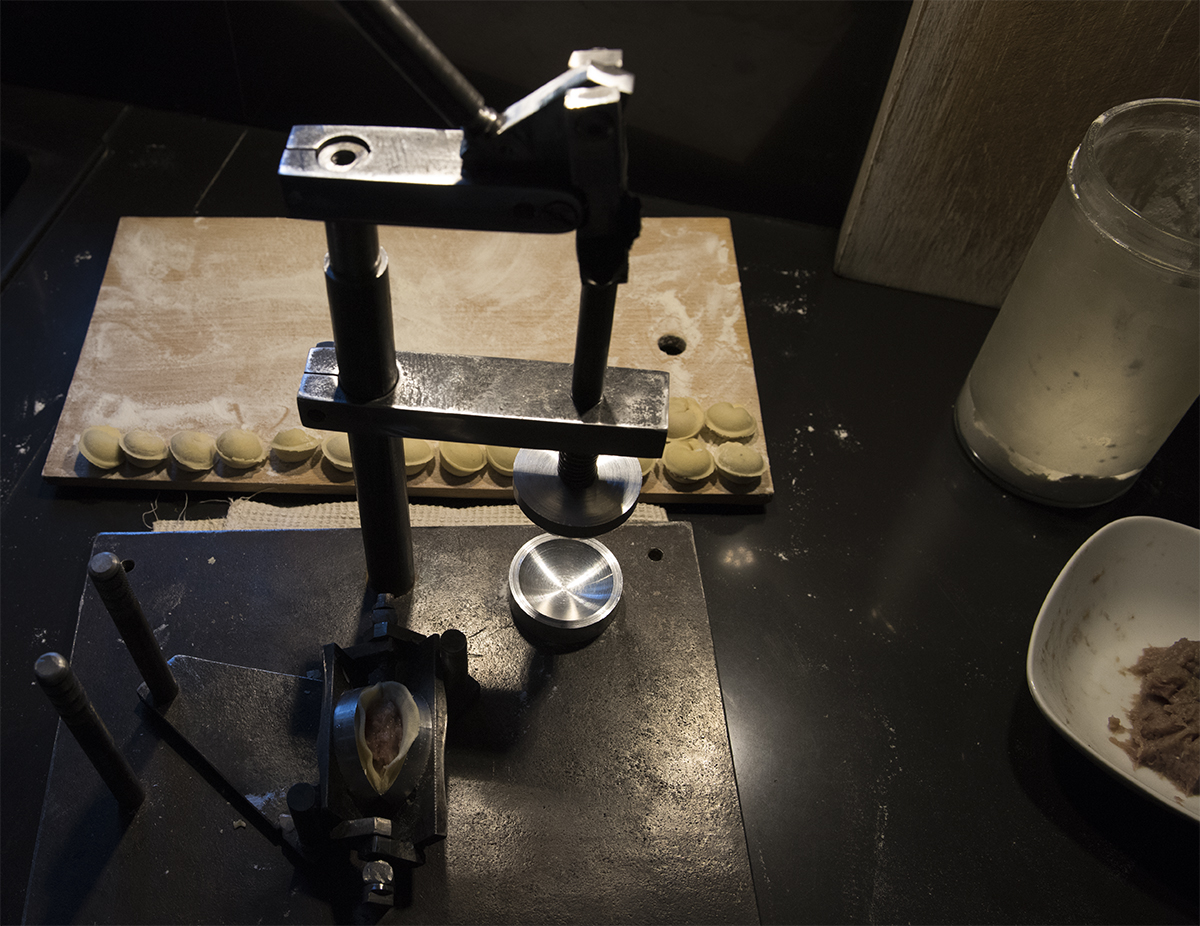 Примерка поворотного пельменозакрывателя.
