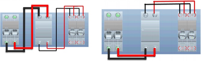 От того с какой стороны что подключено, зависит длина проводов внутри щита. Подумайте, как там оно всё будет расположено внутри. http://econtrol.com.ua/novosti/2522-obnovlenie-rele-napryazheniya-easy9-ot-schneider-electric Последняя модель реле Easy 9 подключается снизу. Предыдущая модель - сверху.