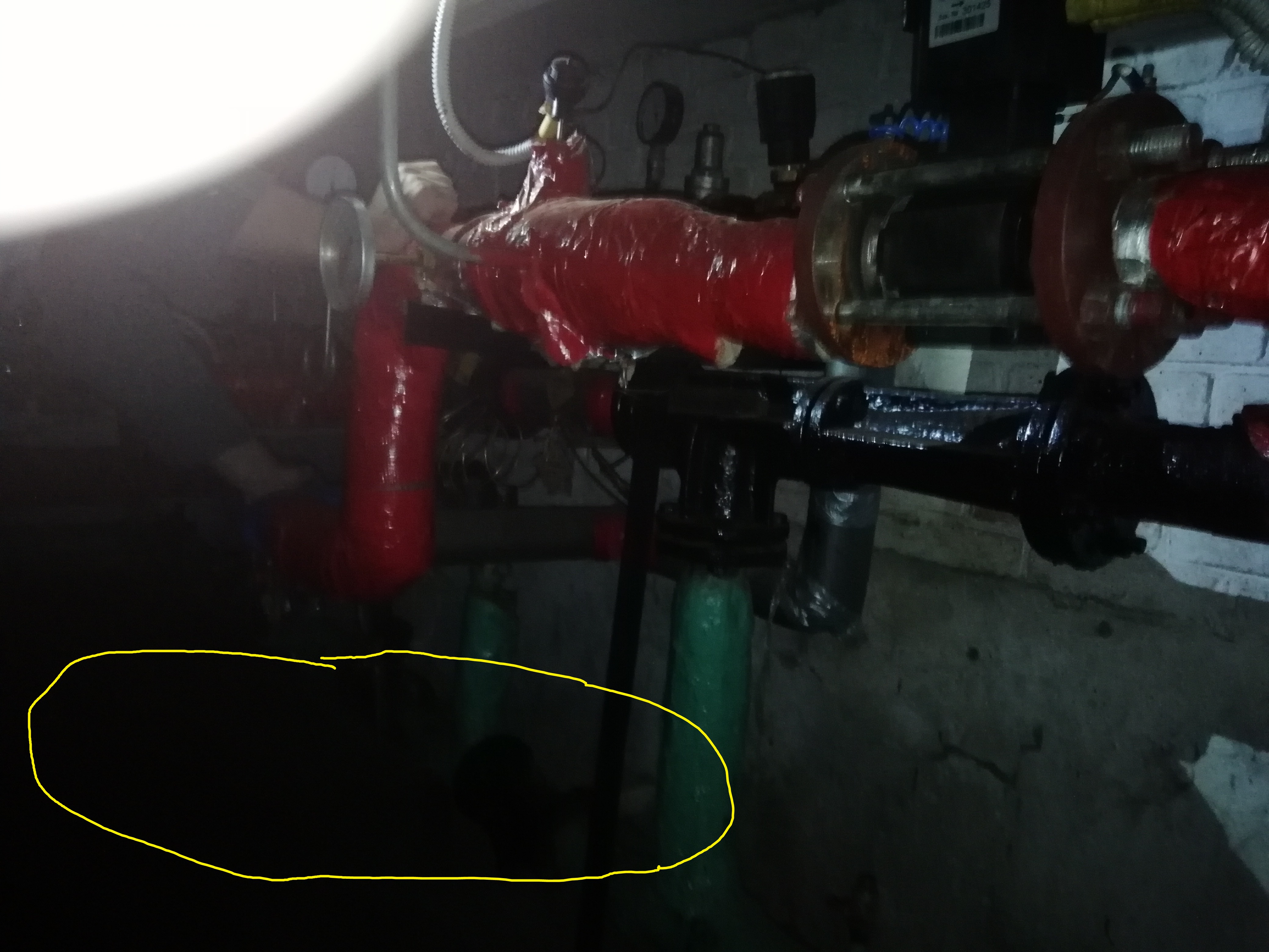 BV, Сказали именно обратный клапан. Фото сделать подробно и хорошо не получилось, т.к. фонарь на телефоне оказался ярче чем на касках сантехников, попросили освятить. На одном их фото обвел пространство, в котором есть вертикальная труба. На трубе рычаг, вот его и поворачивали.