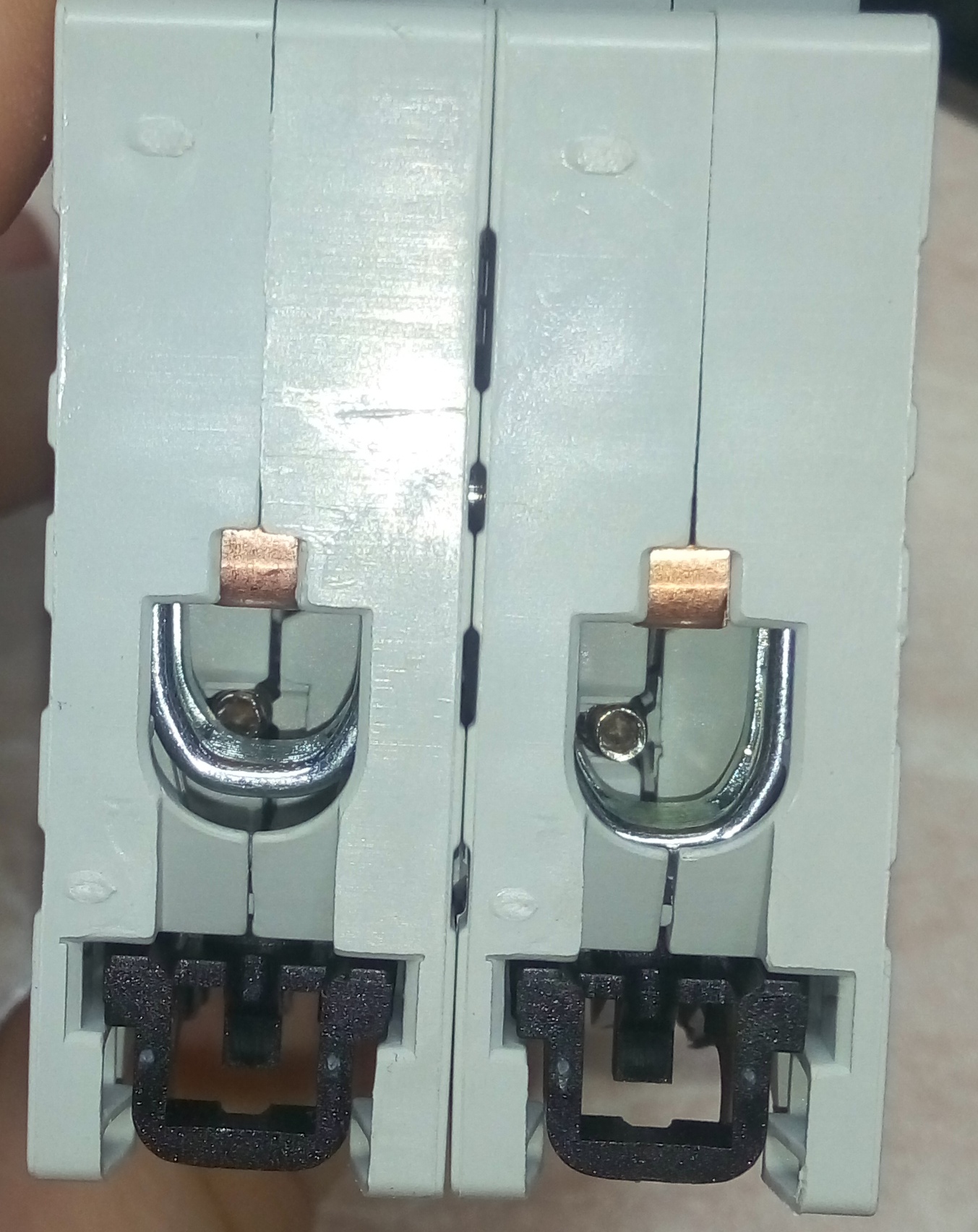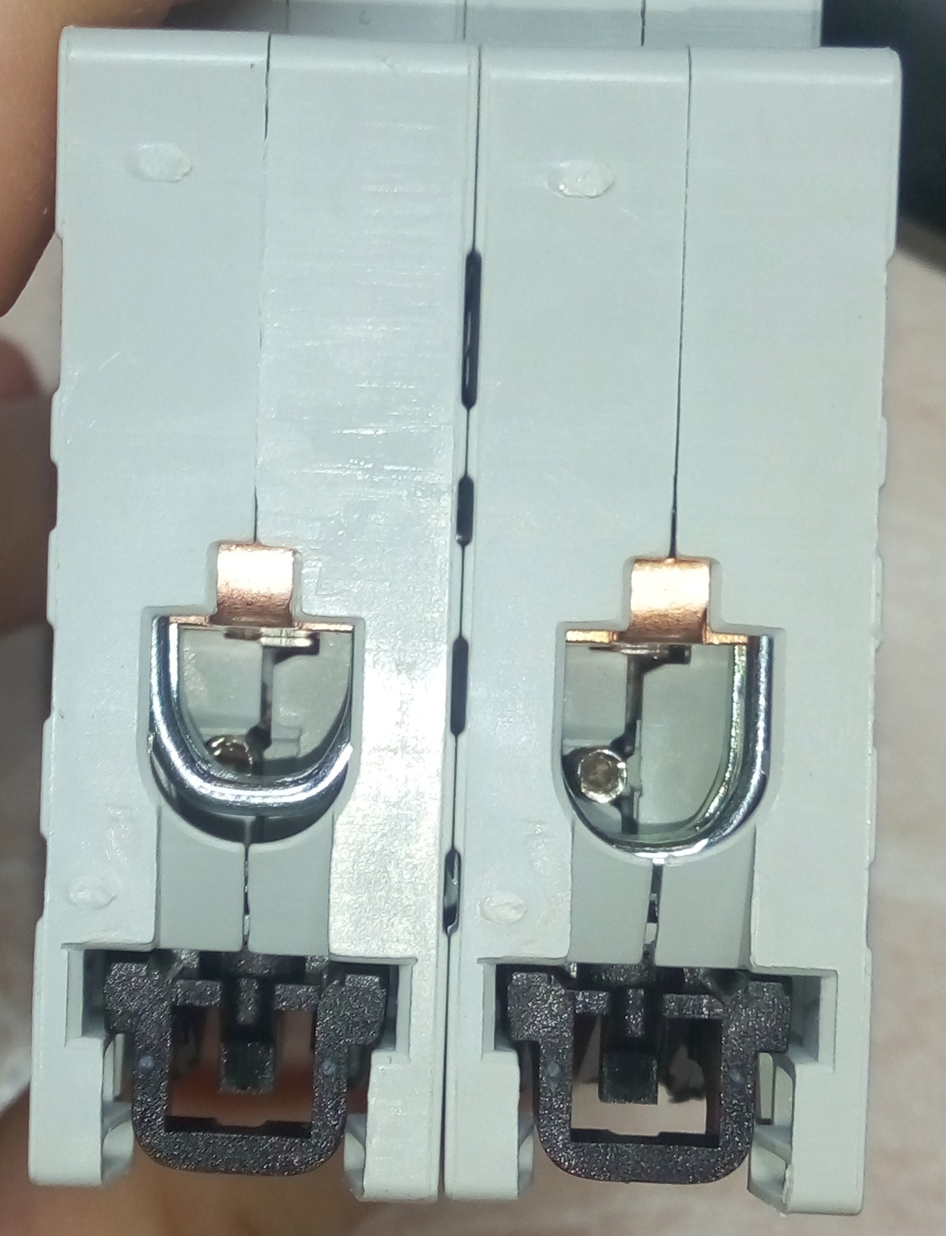 Двуполюсный автомат АББ - это подделка ? Или такие точечные наплывы пластмассы (в месте подачи пластика в форму ?) и неаккуратные металлические гильзочки (???) внутри гнёзд под провода и и несимметричные выемки под них это и есть оригинал ? Сколько весит оригинал на 16А и на 32А ?