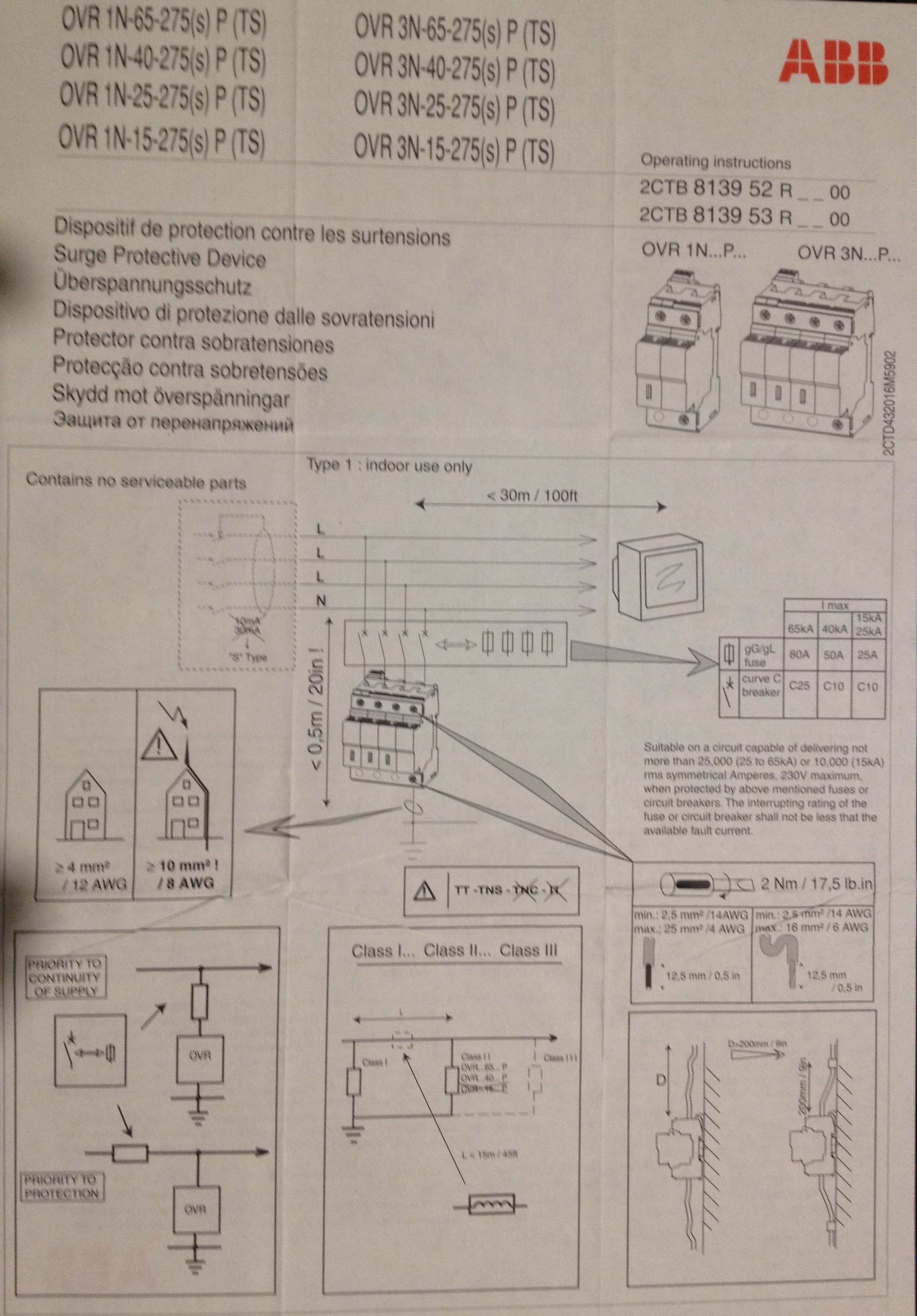 Вопрос к электрикам. Как правильно подключить УЗИП в этажном щите. Имеем, УЗИП АВВ OVR T2 40-275 C.
