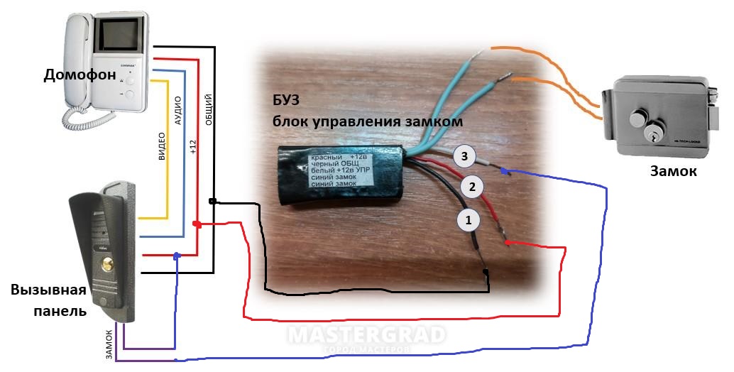 БУЗ позволяет обойтись без блока питания замка (беря энергию от питания камеры малым током) и без толстых проводов
