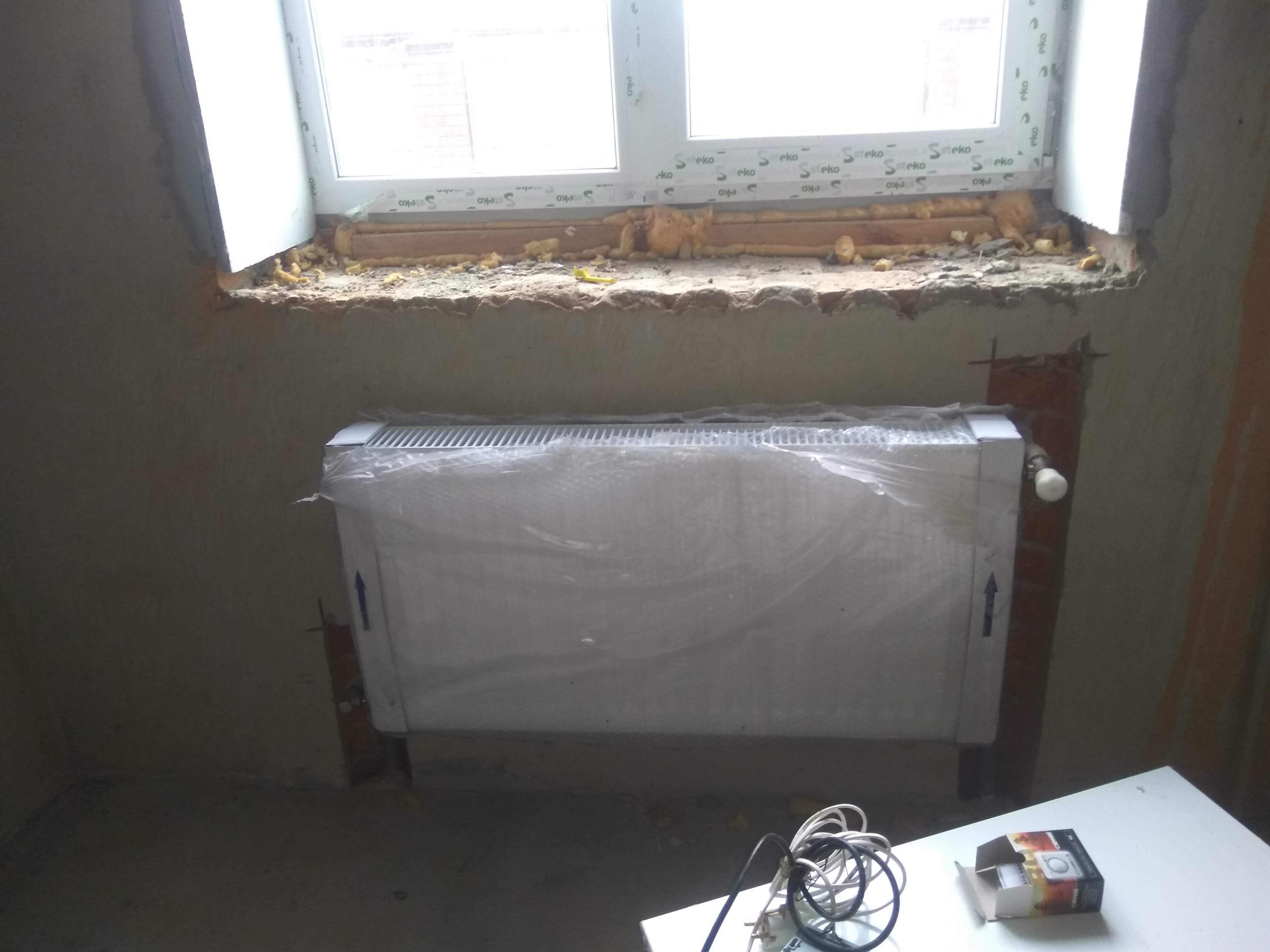 Помогите советом! Ситуация следующая: дом новострой. Под окном (приблизительная длинна окна 1,5 метра) на кухне от застройщика установлен радиатор отопления биметаллический (приблизительно метровый). На уровне окна (от левого края окна до его средины) будет устанавливаться мойка и застраиваться кухонным гарнитуром. Из-за встроенной мойки радиатор необходимо сделать максимум 50 см, т.к. больший там не влезет никак. Но не вижу смысла покупать радиатор 50 см, чтобы замуровать его в мебель (максимум сделав решетку в подоконнике). На кухне будет водяной теплый пол, но переживаю, что отказавшись от радиатора может быть холодно на кухне + могут "плакать" окна (с вентиляцией все продумали... но это может не спасти). Была идея встроить в подоконник внутрипольный конвектор (водяной)...но цена за него слишком высока..дешевых не встречали. Коврик эллектрический ложить на подоконник не хотим, т.к. рядом мойка...вода... не нравится эта затея. У кого есть идеи как решить этот вопрос? Заранее спасибо!