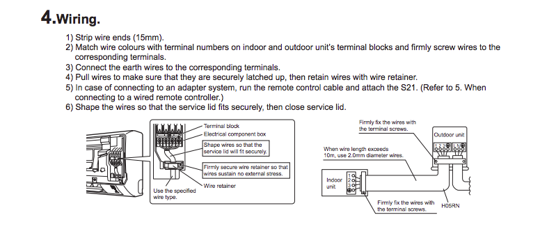 Была заложена трасса и межблочный кабель питания 5 жил. Хочу поставить Daikin FTXB25C/RXB25C у которого питание должно идти к наружному блоку и от наружного уже к внутреннему, вопрос достаточно ли этого межблочного кабеля для правильного подключения данной системы без извращений или те, кто эту трассу закладывали не позаботились об этом и сейчас горбатого лепят и по ходу будут делать опасную залепуху? Вся отделка уже завершена и переделывать нельзя.