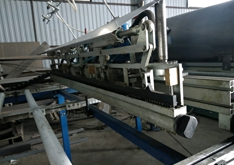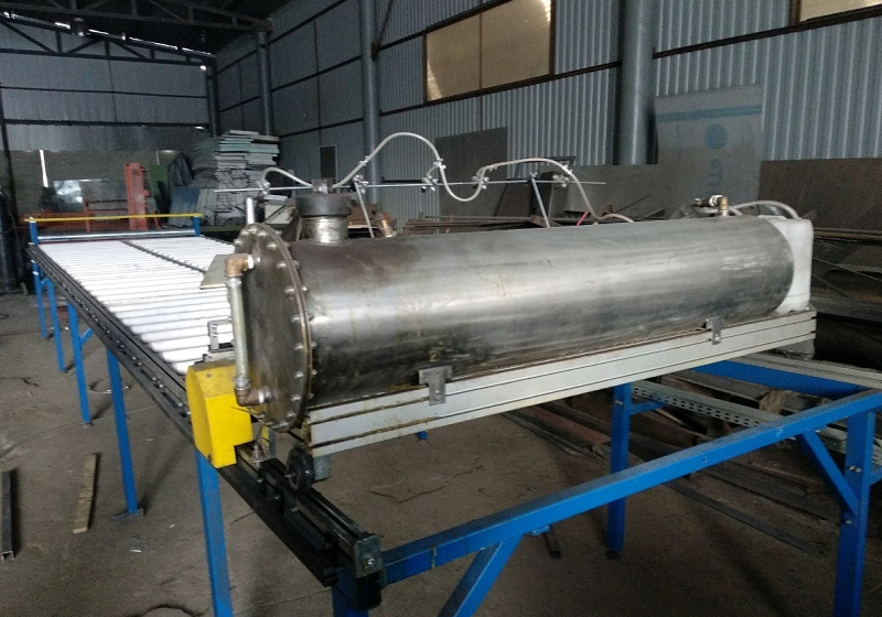Состав установки SNK-2000.3/04: •Модульный рольганг – 1 шт.; •Каретка подвижная в составе: -Электродвигатель привода каретка – 1 шт. -Насос подачи воды – 1 шт. -Емкость для клея (100 л) – 1 шт. •Поливочный гребень с пневмоцилиндрами, масляной емкостью, соплами, запорным механизмом – 1 шт. •Компрессор сжатого воздуха с осушающими фильтрами – 1 шт. •Пульт управления с проводами, датчиками, гусеницей (гибкий кабель-канал) -1 шт. •Заглушки на сопла – 50 шт. ( для перекрытия 500 мм гребня) •Бок валов с регулировкой зазора, шириной 1500 мм для предварительного сжатия панелей 1 шт.