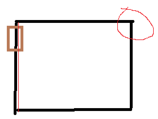 Причем стена слева, где дверь, немного уходит (угол вверху слева чуть больше 90 градусов) и если начинать с правого верхнего угла, то будет тяжело с подрезкой, так как чем дальше буду класть, тем больше будет получаться зазор от ламината до левой стены. По логике удобней когда наоборот, и ты видишь сколько точно надо подпилить ламината.