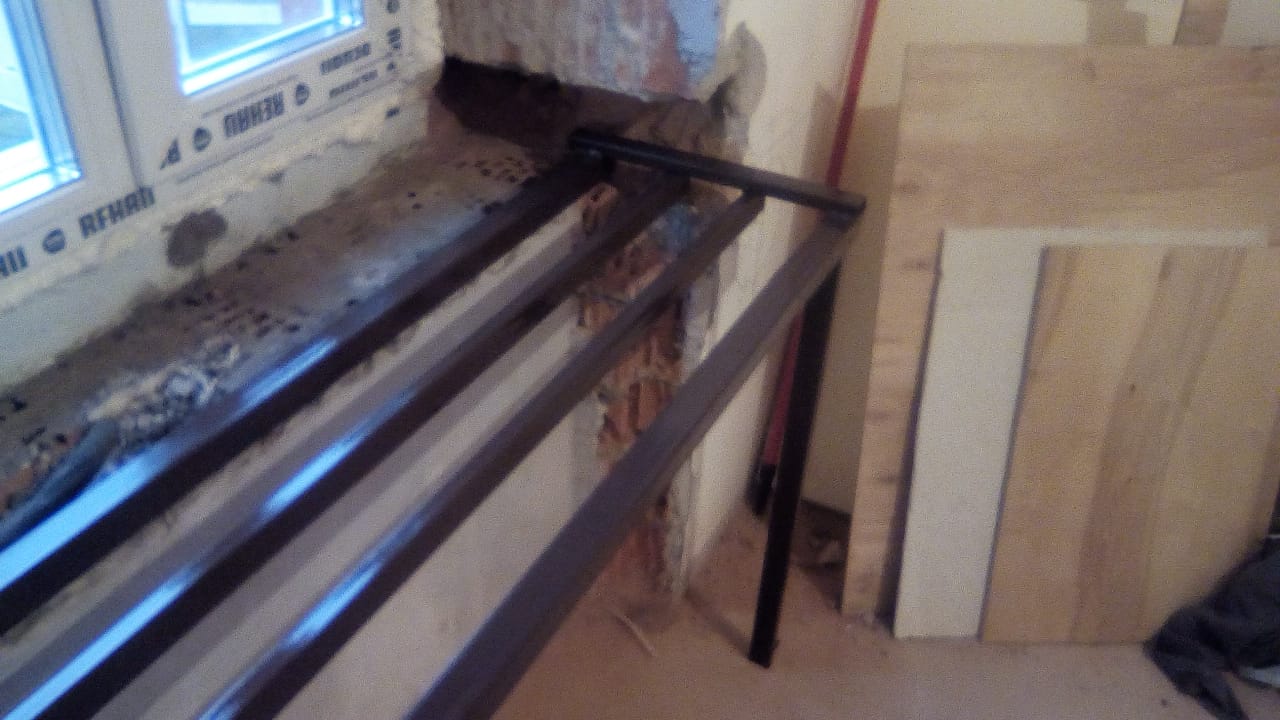 От боковин подоконника ("уши", по бокам хотелось бы заштукатурить, чтобы подоконник был по ширине окна). Имеется основание - 30 см кирпич и 16 см весит в воздухе, как сделать при таком раскладе прочный сидячий подоконник?