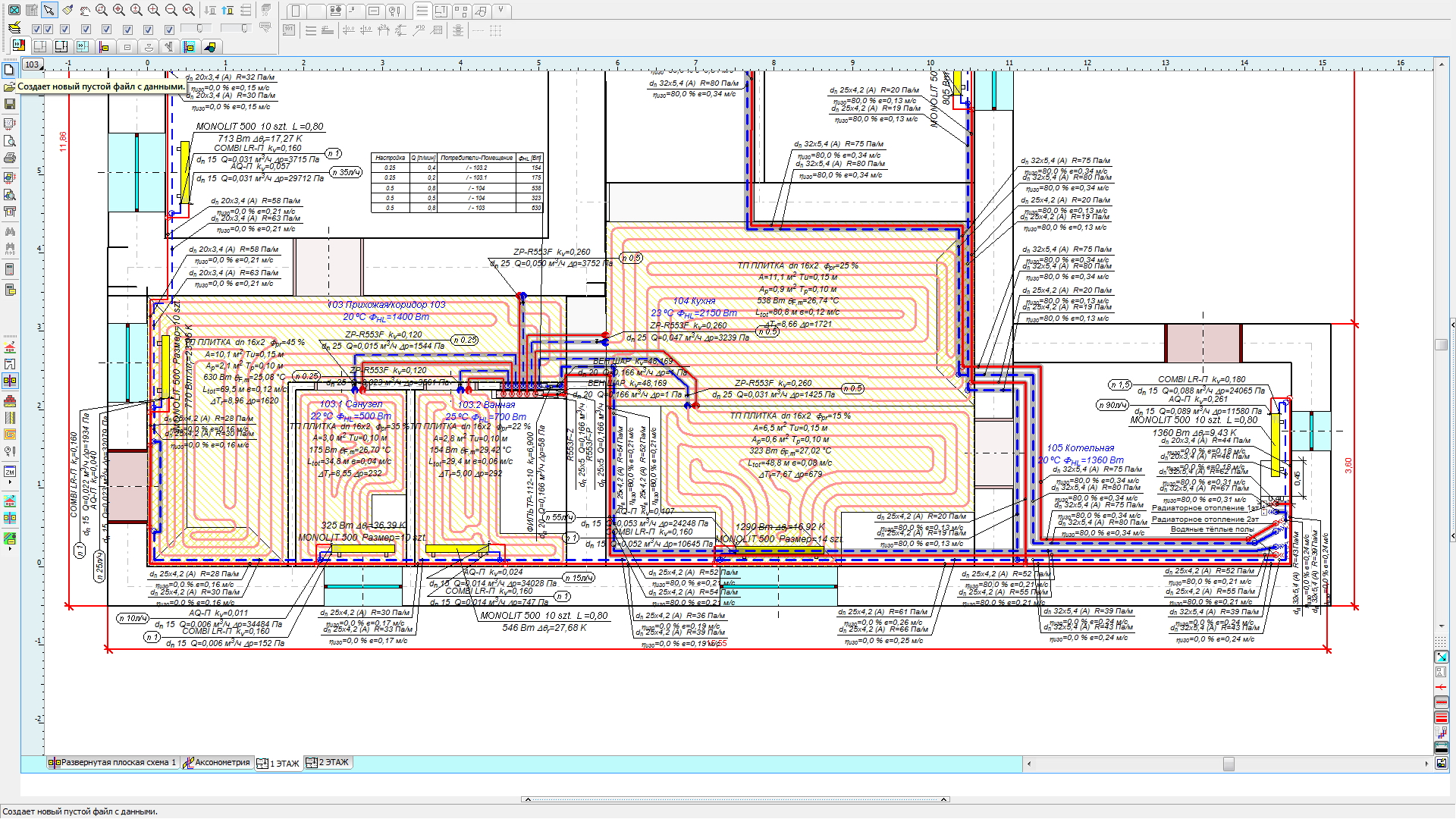 помогите рассчитать материал, трубу, какой лучше брать коллектор? понял что нужно всего 6 контуров! нужен ли насос? нужна ли регулировка конуторов? вроде есть давление от общего котла, не знаю сколько, но сейчас 2 батареи греют!