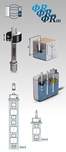 то, что на картинке в левом нижнем углу - на одной штанге три плавающих магнита, и три геркона внутри трубки.