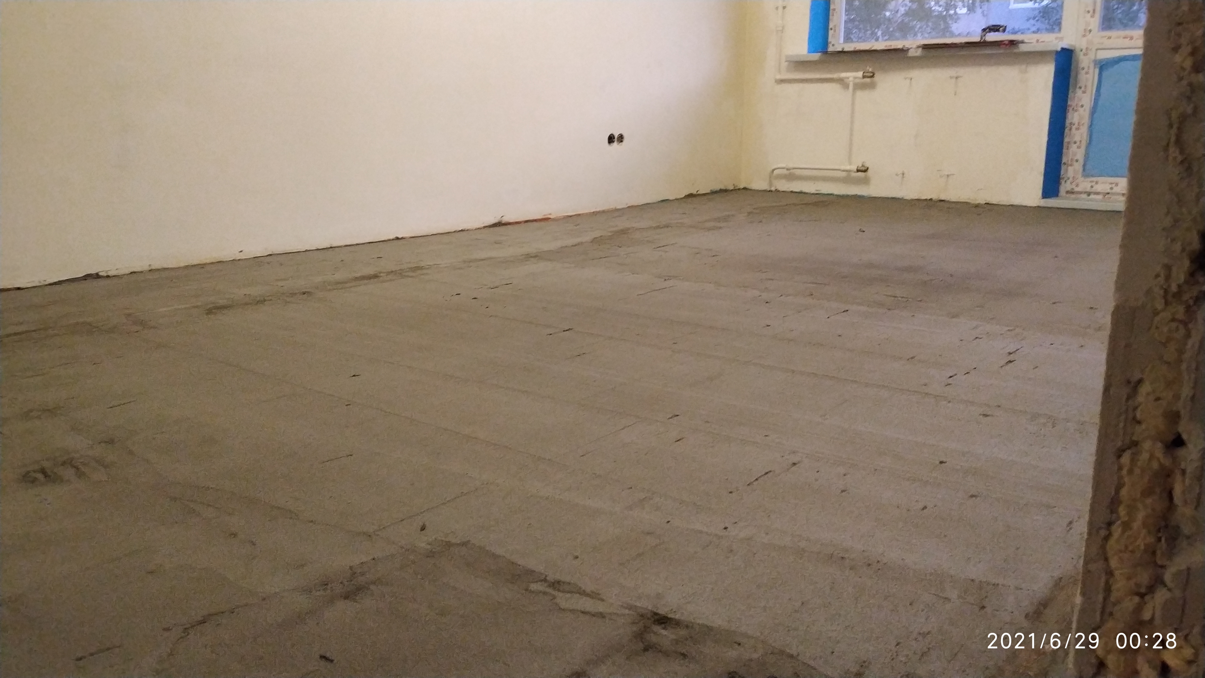 Грэй, Фанерой хочу выровнять для того, чтобы поднять уровень пола, чтобы сравнять с уровнем плитки в ванной и туалете. Выровнял пол в первой комнате, загрунтовал акриловой грунтовкой, затем нанёс слой бетонконтакта white house, затем нанёс плиточный клей, выравнивал правилом правилом 2,5 м.