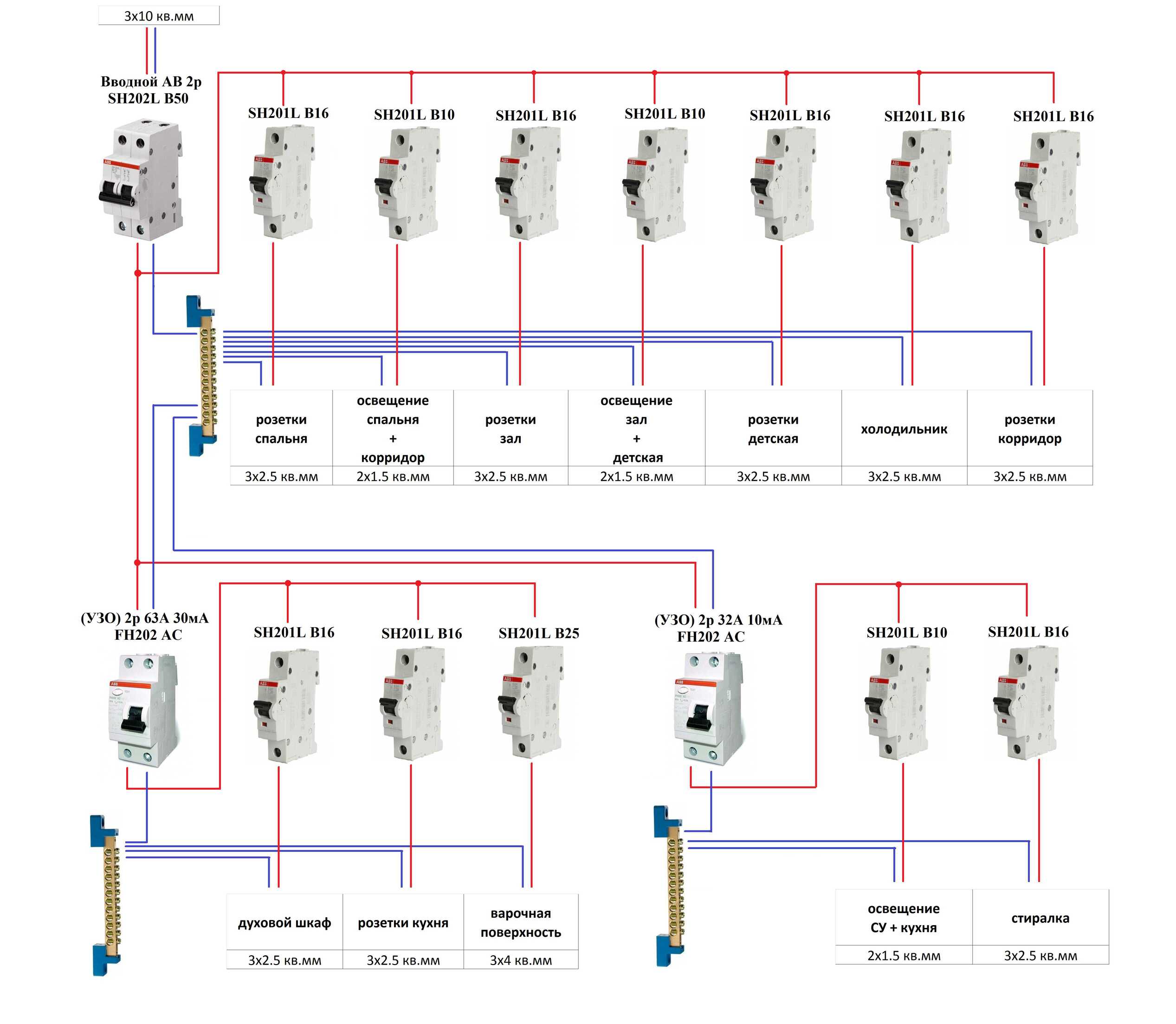 Начитался за месяц столько статей, что КЗ в голове скоро будет с утечкой мозгов. В итоге везде пишут "...есть куча готовых схем..." или " ...уже обсуждалось и есть готовые решения...", НО ёлки палки, ссылки не дают. Короче, предлагаю обсудить схему, которую я сам себе нарисовал под конкретные условия. Интересует мнение практикующих специалистов, а не блогеров. Именно что лучше исправить с точки зрения вопросов безопасности, эксплуатации и сборки схемы в щитке.
