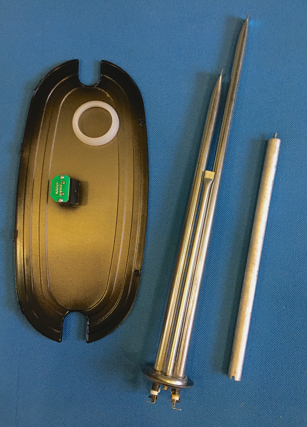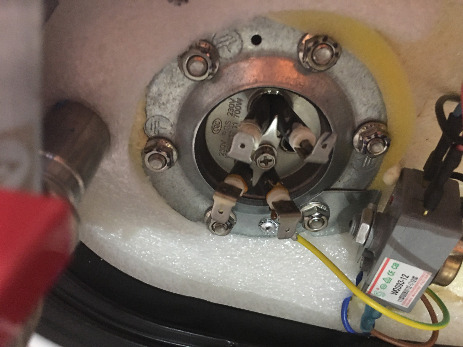- Сняв контакты, отодвинув реле, вынув и закрепив на корпусе термостат перегрева и провода с помощью скотча, чтобы не висело и не мешалось, открутил прижимной фланец(крест на крест) и аккуратно, сняв его вынул сам ТЭН. За 3 года редкой эксплуатации, накипи там не особо много скопилось, но магниевый анод растворился, хотя по факту за это время ВН эксплуатировался в общем 1.5-2 месяца. Т.е. еще один довод в пользу слива воды, а не хранения ее в баке. Так как она потихоньку растворяет магниевый анод) А нафига добру зазря пропадать?)