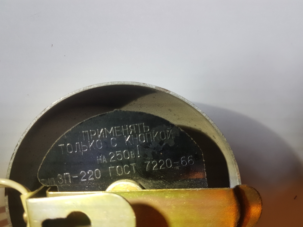 это больше на зуммер похоже будет по звуку... А надпись - наверное чтоб отличали этот от звонков завода Куйбышева с кнопками на 6 вольт. К слову, очень часто в старых домах видел кнопки, выведенные телефонной лапшой и думал - неужели все такие пофигисты разгильдяи были, что на 220 лапшу ставили. А тут вон оно как оказалось... 6 вольт
