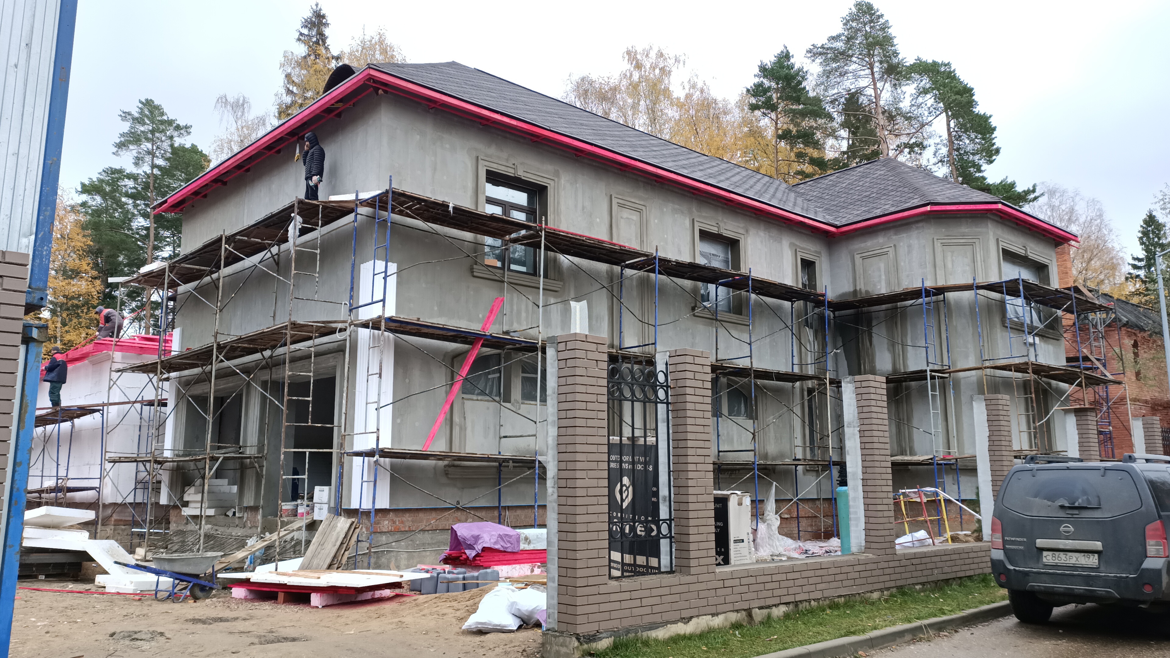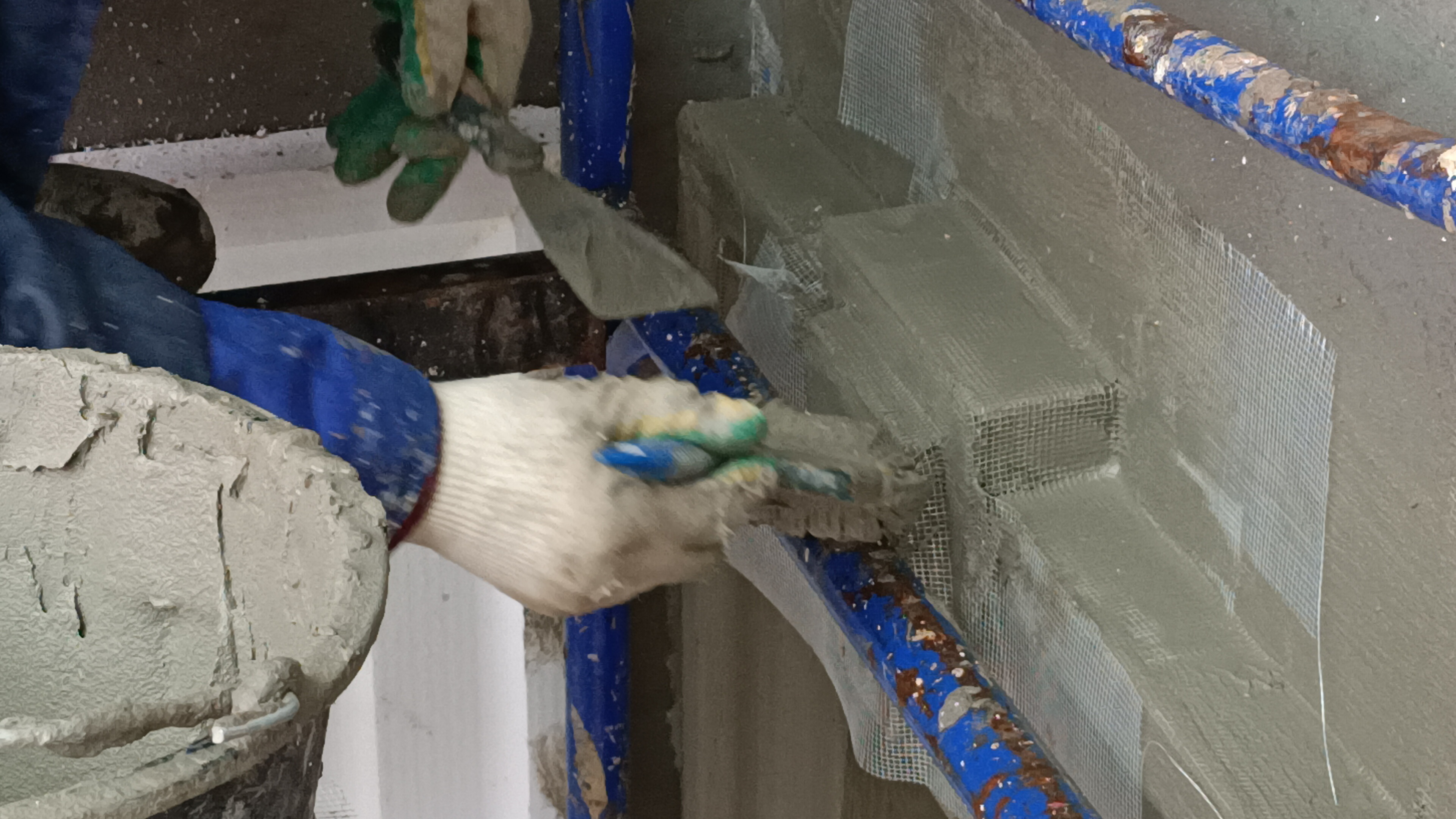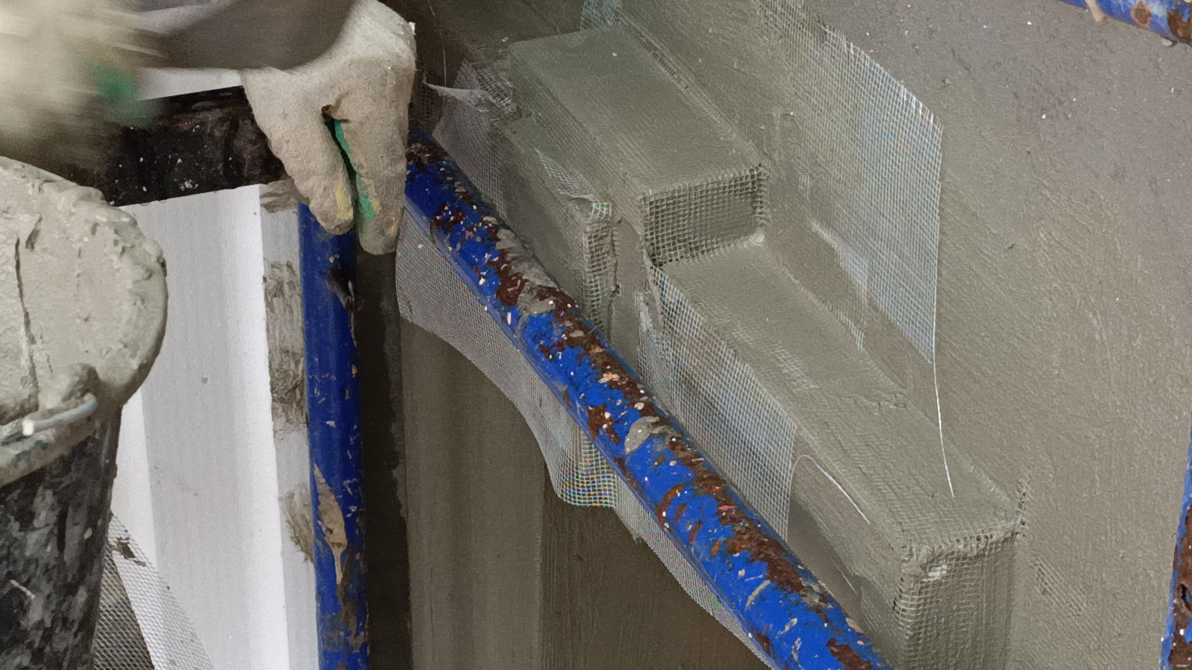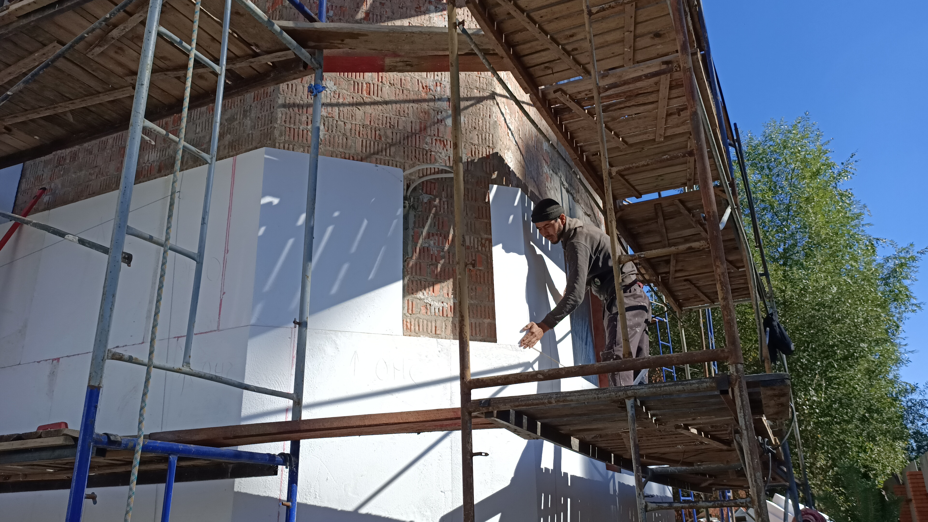 Как производится утепление фасадов пенополистиролом ППС16ф 150мм по технологии СФТК Мокрый Фасад, как производится армирование фасадных пенопластовых декоративных элементов клеем с Архитектурной Стеклотканевой Сеткой Bautex Архитектурная 3х3 мм, 80 гр/м2. Производим реконструкцию фасадов частного дома с утеплением. !#[]