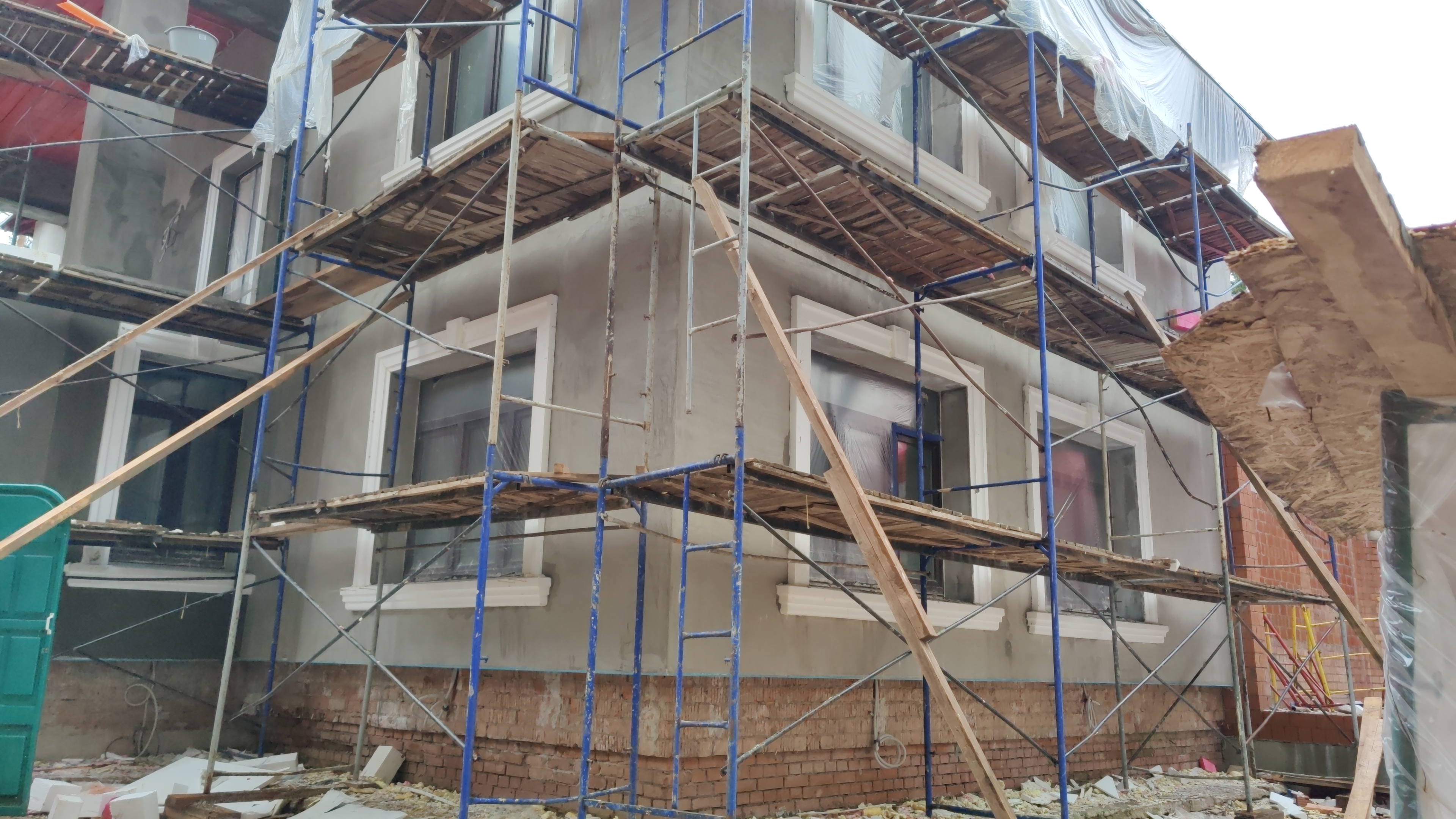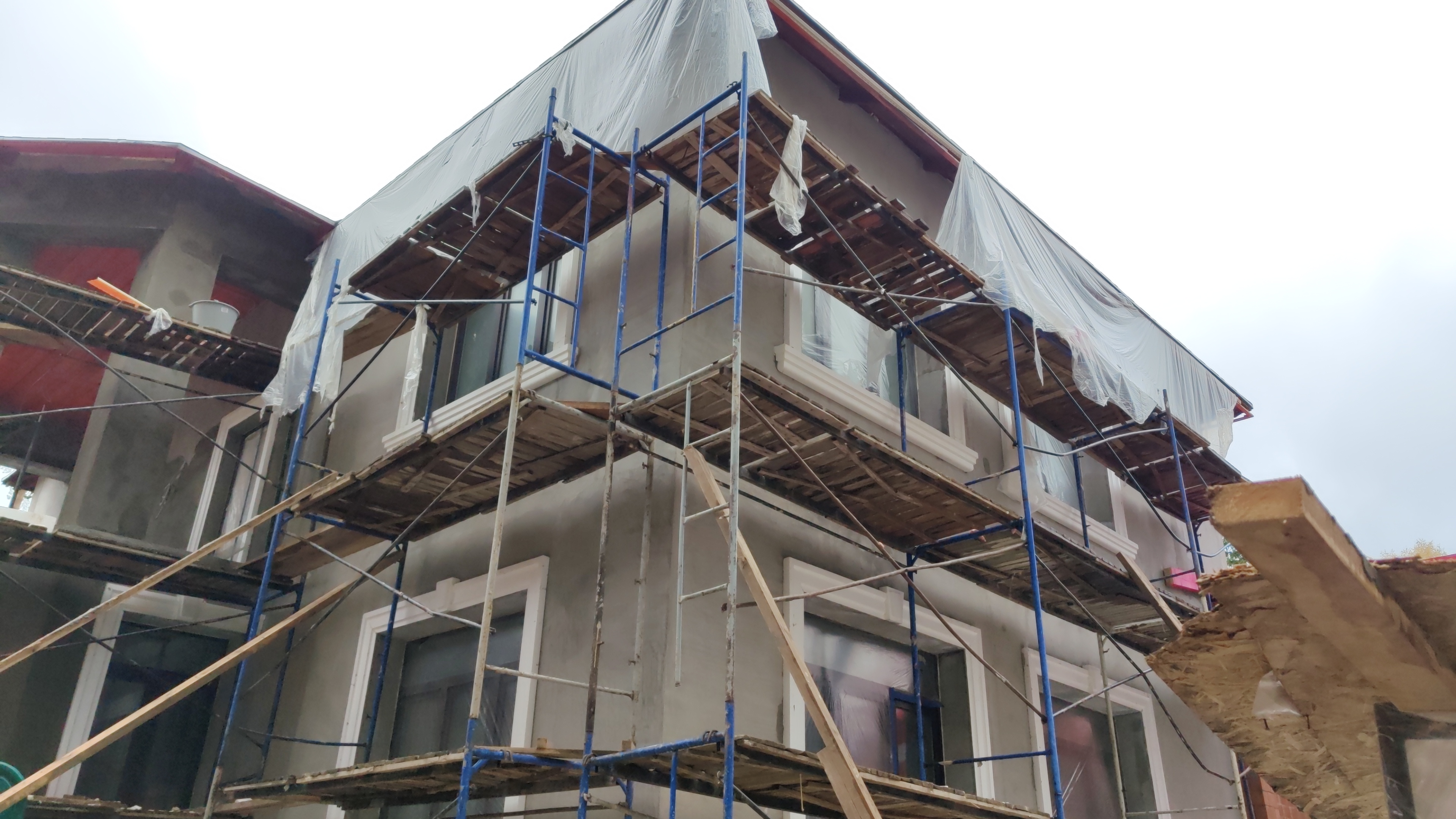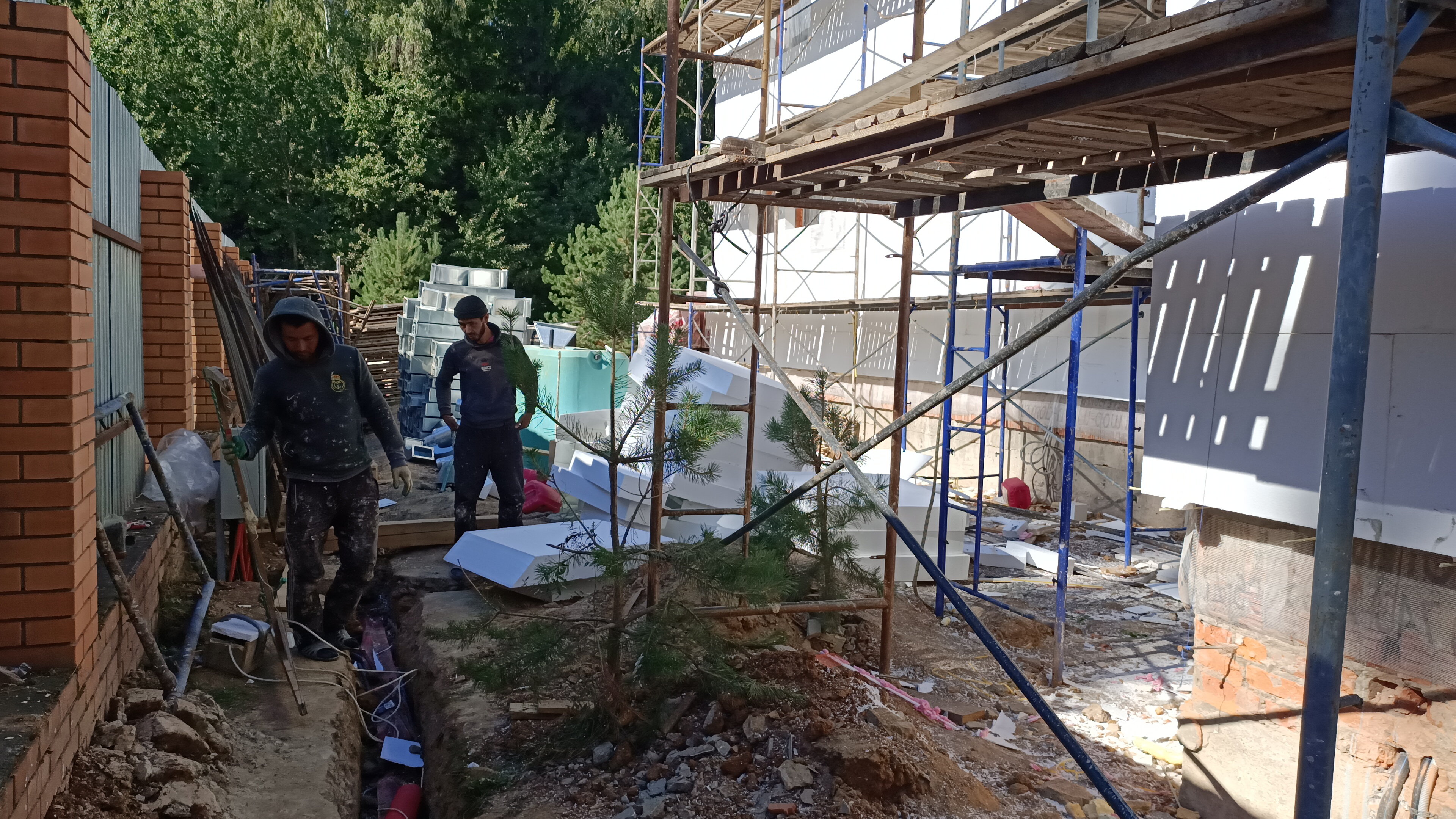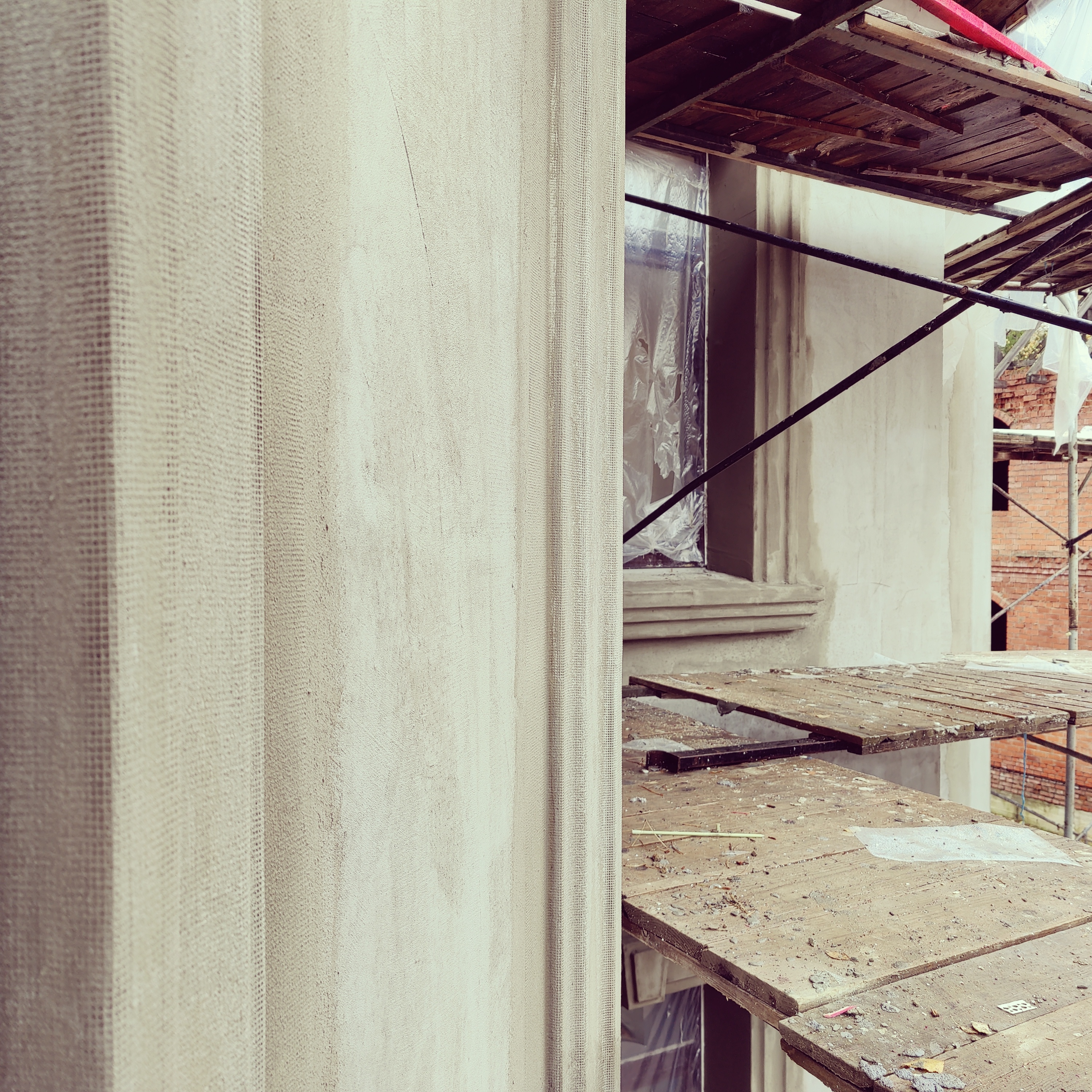 Как производится утепление фасадов пенополистиролом ППС16ф 150мм по технологии СФТК Мокрый Фасад, как производится армирование фасадных пенопластовых декоративных элементов клеем с Архитектурной Стеклотканевой Сеткой Bautex Архитектурная 3х3 мм, 80 гр/м2. Производим реконструкцию фасадов частного дома с утеплением. !#[]