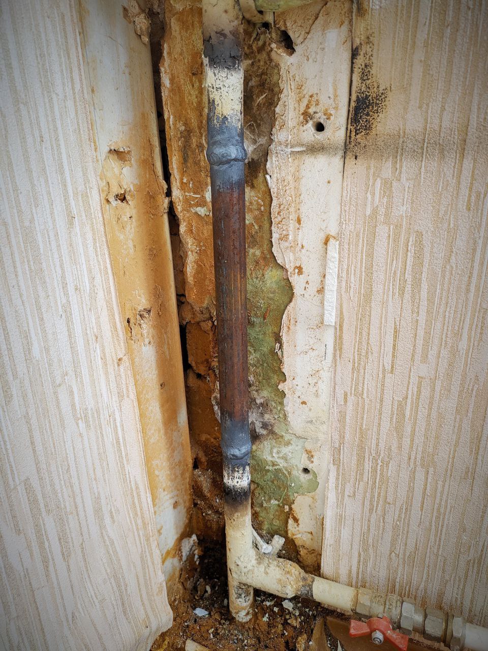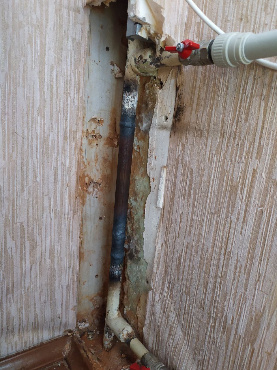 Добрый день всем! Прошу помощи и совета у специалистов. В моей 1 комнатной квартире на 5 последнем этаже потёк стояк отопления. Сантехники прибыли на место, вскрыли гипсокартонный короб и обнаружили течь из старого вентиля, который стоял на стояке между подводными трубами к батарее отопления. Вентиль оказался в перекрытом положении. Это значило, что поток теплоносителя проходил через мою батарею и уходил вниз к соседям. Вместо вентиля вварили кусок трубы. После этого ремонта батарея практически перестала греть. Верх был чуть теплее, низ холодный. Сантехник промывал по-всякому, никакого эффекта. Знакомый подсказал мне, что вентиль стоял не зря, и надо вварить в трубу полумесяц, который будет создавать небольшое давление и теплоноситель будет поворачивать в мою верхнюю подводную трубку. С этим вопросом обратилась в ЖЭК, просила поставить новый вентиль (ответили, что это запрещено делать, так как вода будет проходить через мою систему и нижние квартиры будут получать меньше тепла, чем подаётся), также просила вварить полумесяц, еле-еле согласились. Варили что-то посередине новой трубы (на фото виден сварной шов), но стало ещё хуже... Теперь верх подводной трубы холоднее, а нижняя подводка теплее. Нонсенс! Стояк не сказать, что горячий, так было всегда, в моей квартире зимой без обогревателя температура не поднималась выше 17 градусов... Но сама батарея теперь имеет в самой тёплой части 35 градусов. Снова обратилась в ЖЭК. На меня уже смотрели, как на прокаженную... Сантехник предположил, что подводку надо менять на трубы большего диаметра. Поменяли... Без какого-либо эффекта. Всё осталось по-прежнему. В квартире ниже в этом году стало теплее, наверное из-за того, что теперь носитель не проходит, как раньше, через мою батарею. Предложили менять батарею, якобы она забита.. Но если столько лет вся вода через неё циркулировала, как она может быть настолько забита? И перед этим случаем с протечкой она грелась вся равномерно. Как только убрали вентиль - началась проблема. Второй сантехник сказал, что замена батареи ничего не изменит. Якобы котельная даёт малое давление. Скажите мне, пожалуста, в чем может быть проблема? В данный момент я вынуждена уже год жить вне дома, но по возвращении надо снова заниматься этим вопросом. Фото выкладываю в хронологическом порядке. Спасибо за все советы и комментарии по существу вопроса.