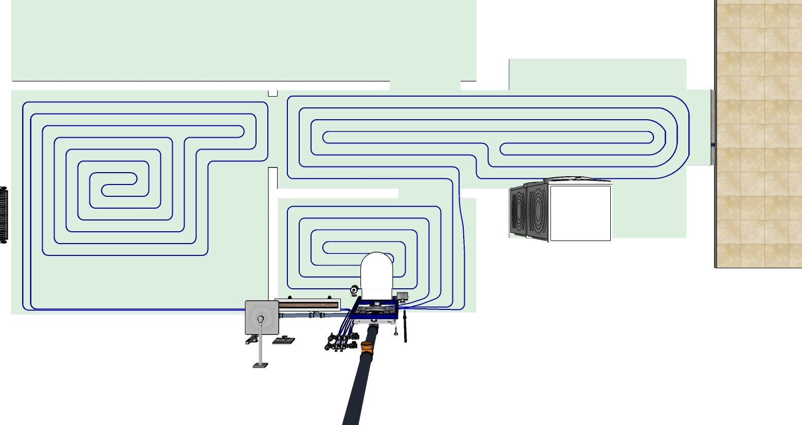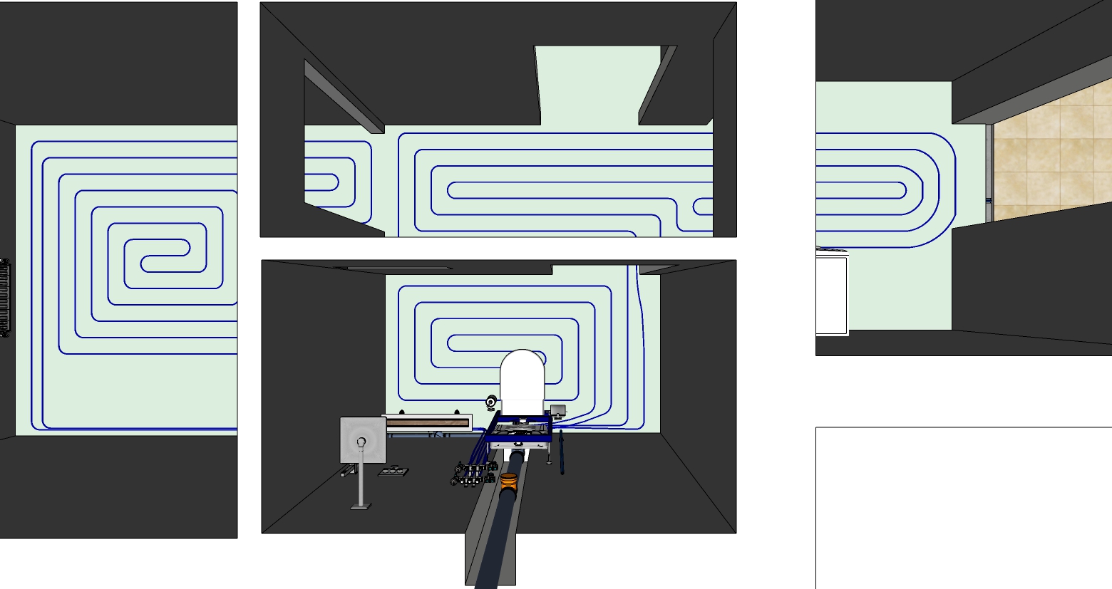 Здравствуйте. Имеется однокомнатная квартира с автономным отоплением, хочу сделать комбинированный водяной теплый пол. В скетчапе нарисовал 3 контура (Кухня длина контура 51 м., Санузел 21 м. и коридор 49 м.). Подскажите пожалуйста: