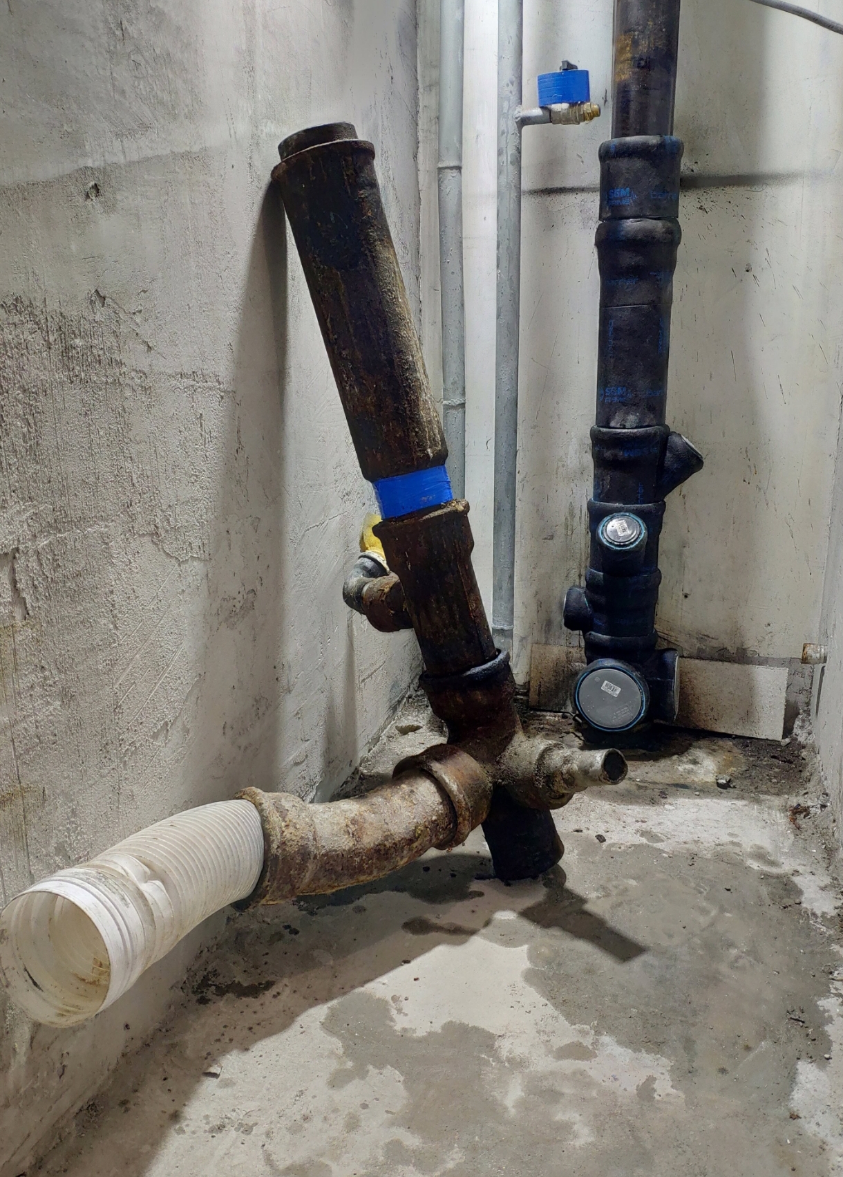 Silver2013, часть трубы выше крестовины уже заменена год назад на пластик, потому что она лопнула. Сейчас лопнул остаток трубы ближе к моему потолку, т.е. ее тоже менять. Нет уверенности, что в скором времени и крестовина не лопнет от старости. А так же есть риск повреждения крестовины при расчеканке.