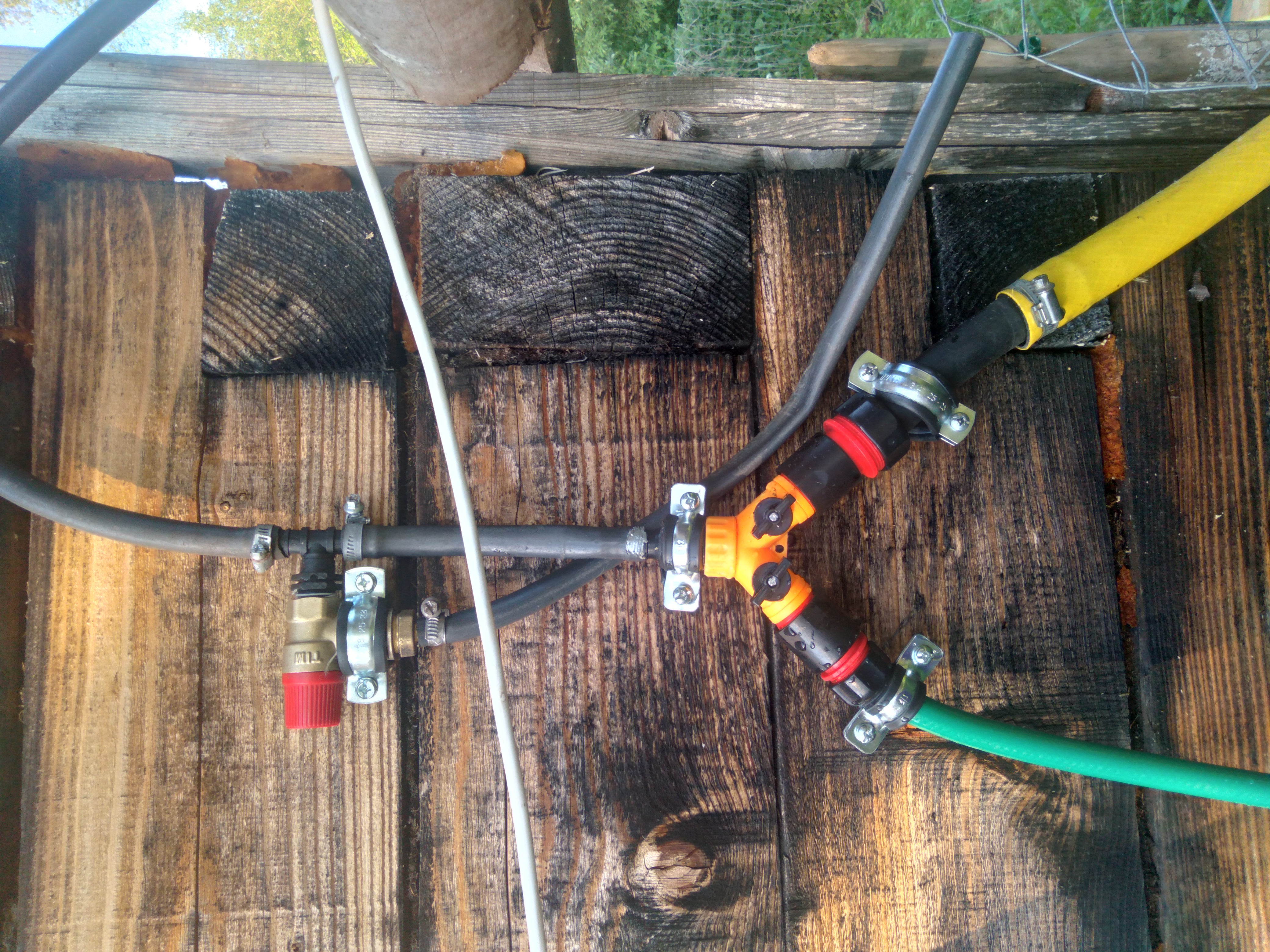 Вобщем притаранил из города аварийник полторашку, на полив через форсунку хватает, перегиб сбрасывает в дренаж.