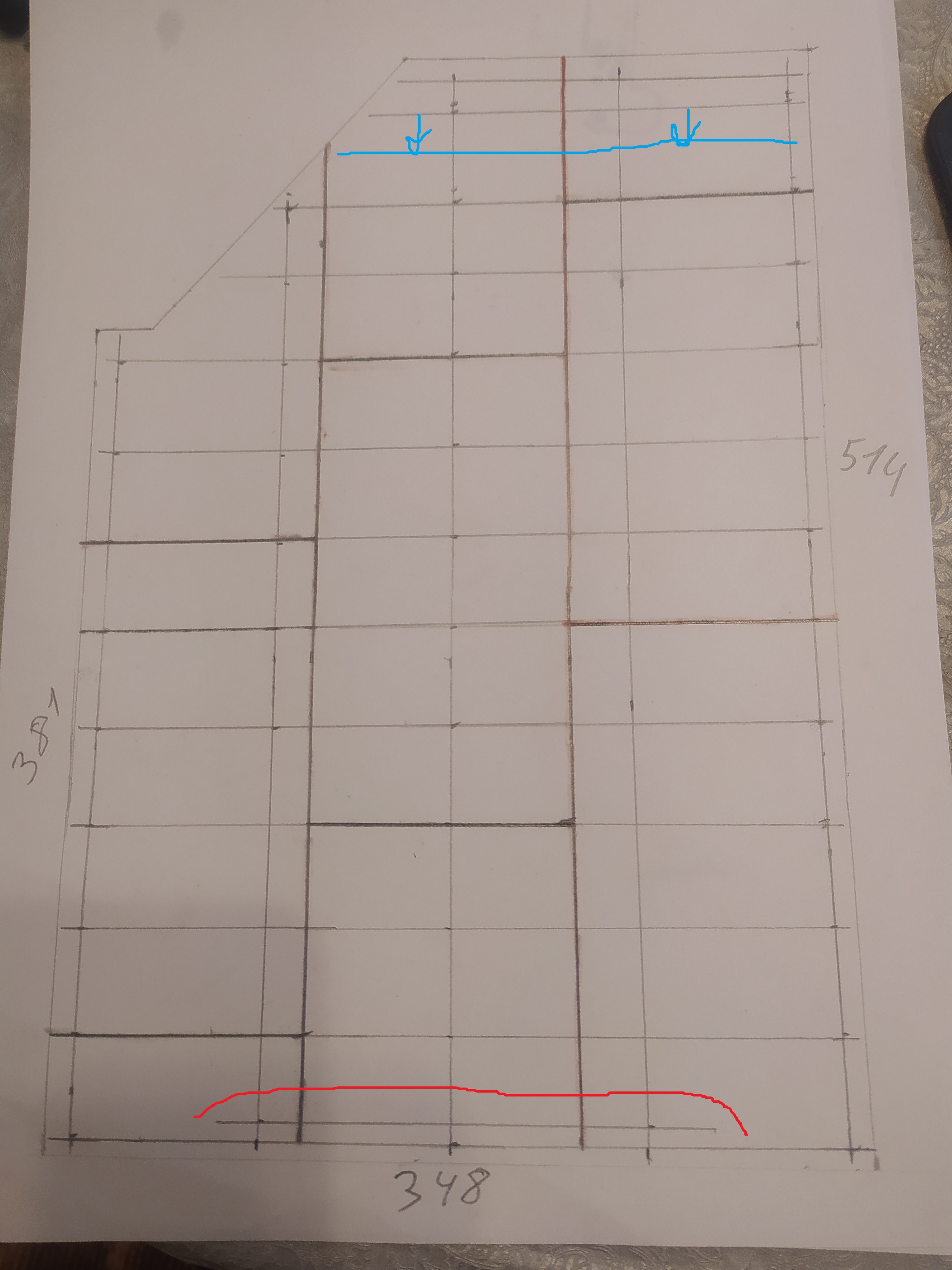 нарисовал вот обрешетку. основные отступ от стены 10 см, потом шаг 84, подвесы каждые 67 см несущие каждые 44 (выше писал, почему, прикидывал, что если 50 использовать и листы 2 метра, то меньше на профиля и больше на 2 листа)