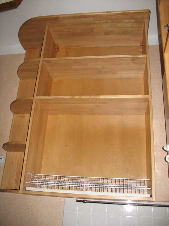 Обычная "хорошая" кухня выглядит так - корпуса из ЛДСП, а фасады из дерева или МДФ+шпон. Это напоминает показуху - типа добротный забор, а за ним - так себе домик. А что если попробовать обратный вариант - корпус из тонированной сосны, а фасады - профиль МДФ+ПВХ и такая же вставка . Что это дает? 1.Производителям: