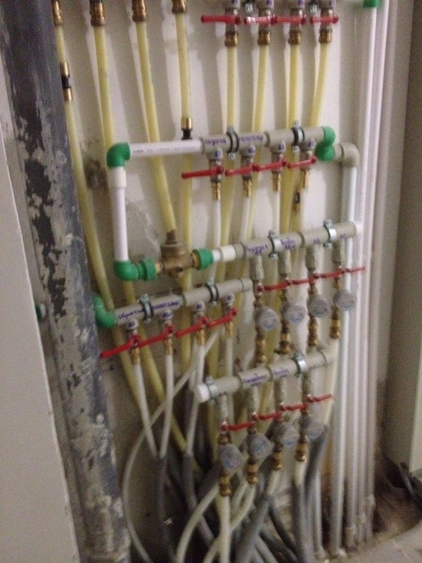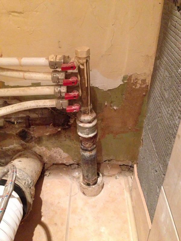 Трубы от застройщика соседи себе уже заменили (фото №2, труба справа..) полностью из коридора в квартиру ... странно только, что так же поставили доп.соединение.