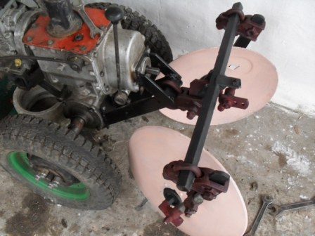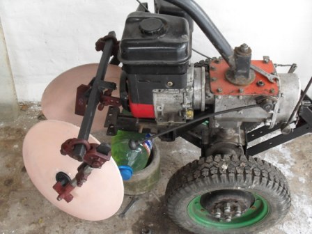 Я как то писал,у меня самодельный МБ очень тяжело поднять за ручки с плугом,да и Неву с инструментом не очень легко.На МБ балласт спереди и только реально больному будет тяжело.Нева без инструмента сама падает.Вот фото.Это Нева сейчас стоит не Д300,а ДМ 1,без переднего колеса падает вперед.Вот МБ самодельныйбалласт виден нормально ниже глушителя.А если не балласт,что плуг спереди ставить?