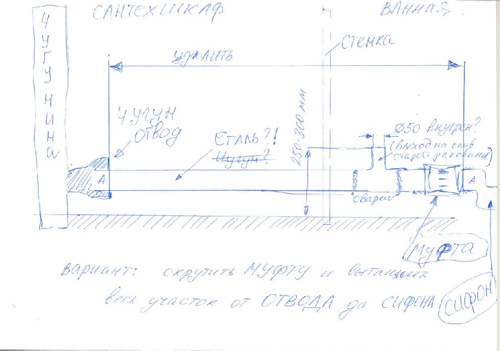 Итак, вариант 1й. Покупается современный слив под ванну., всё разбирается (интересно, сколько лет этим заржавевшим гайкам на хрен знает сколько? :eek: и открутятся ли они?) и собирается по новой на пластике. Муторно, долго и не факт что получиться что-то дельное. Врезка то в стояк уже "запрограмирована" на определённой высоте! вариант 2. Собрать какой то хитрый сифон из пластиковых углов, и с того тройника жуткого подключить пластиковую горизонтальную трубу для мойдодыра (40ку) и разместить её на уровне пола. Но тогда, в этой трубе, самодельном сифоне будет постоянно стоять тухлая вода и все возможно будет засоряться, зато можно подиум-короб для мойдодыра сделать максимально невысоким. Вариант 3. Как то обрезать этот тройник с двух сторон , поставить что-то современное без сварки, и свободный сосок этой модернизированной хреновины поставить торчком не вверх, а вбок, высоковато, но приемлемо, наверное... Есть ли пластик для такой врезки? Вот я уже репу до дыр прочесал...:confused: