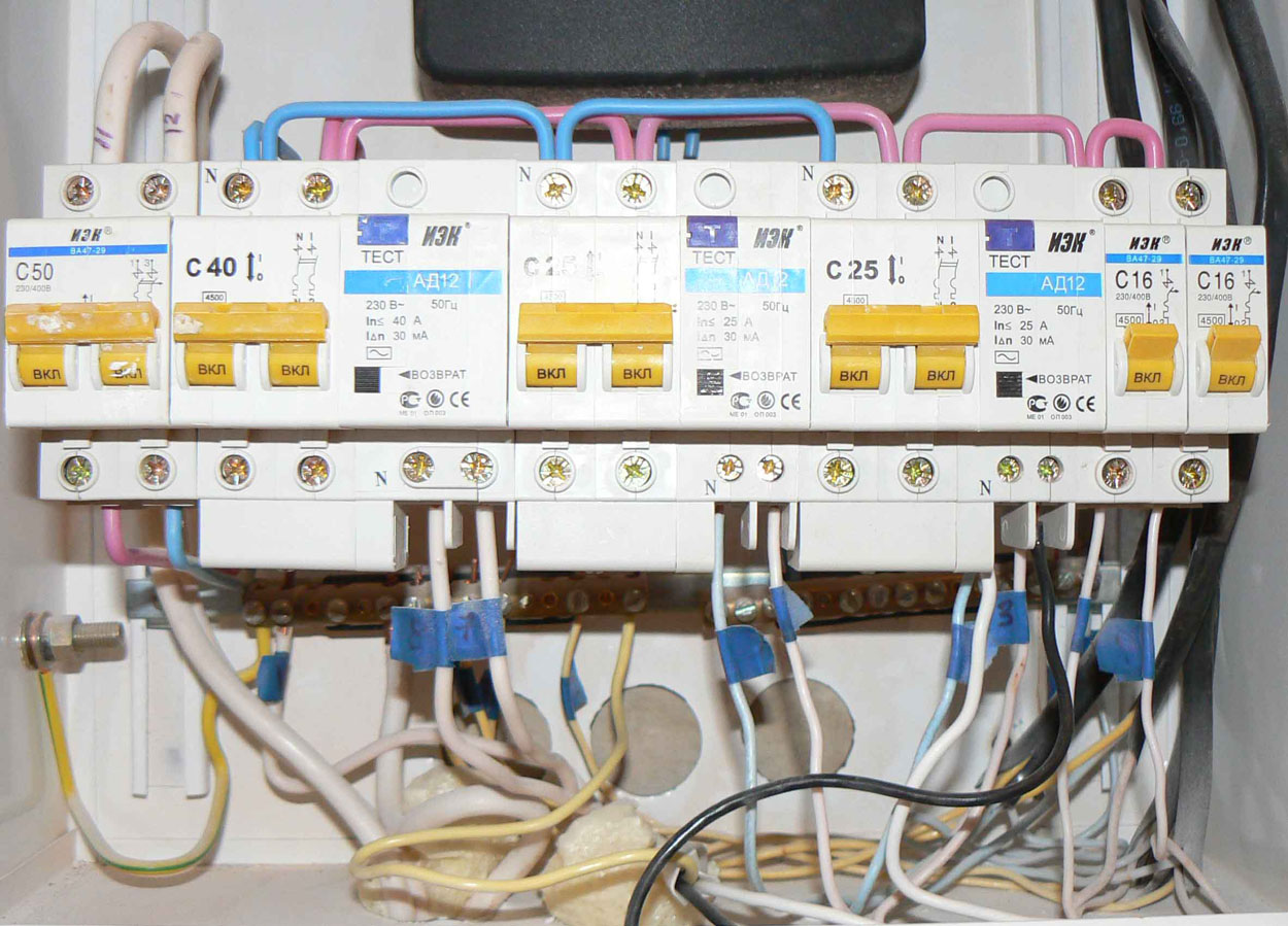 Какая разводка уже есть в щитке квартиры: 1) общий рубильник - ИЭК ВА47-29 - С50 - 230/400В 2) УЗО (как я понял для электроплиты) - ИЭК АД12 230В 40А 30мА - тут 3 медных провода диаметром 3 мм, они же в гофршланге завдены на кухню и выходят из пола 3) УЗО - ИЭК АД 12 230В 25А 30мА - тут медь диаметр ~ 1,5 мм, это розеточная сеть в комнату 4) УЗО - ИЭК АД 12 230В 25А 30мА - тут медь диаметр ~ 1,5 мм, это розеточная сеть как раз на кухню + на нем еще теплый пол ванна и туалет (плрщадь обогрева ~ 3 кв.м.) 5) ИЭК ВА47-29 С16 230/400В - это освещение комната + туалет/ванна 6) ИЭК ВА47-29 С16 230/400В - это освещение кухня + коридор
