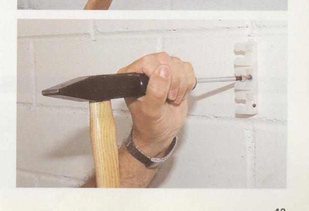 В тех местах, где из-за отсутствия места невозможно забивать дюбель с помощью молотка, в качестве вспомогательного инструмента можно использовать отвёртку с максимально возможным захватом шлица