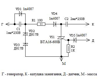 RAFI написал : чтоб напряжение на выводах катушки зажыгания в максимальные обороты не привышало максимум 100 вольт иначе в нём перегорает тиристор