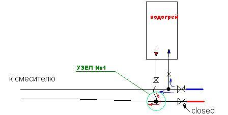 А подвод холодной так сделал: от вентиля х.в. ->фильтр сетчатый обычный->клапан предохранительный от нагревателя(со стравливающим механизмом)->тройник с краном (для слива воды после эксплуатации)->нагреватель