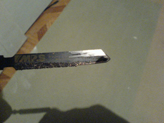 Вообщем пошел в магазин с целью купить пилку для лобзика по керамике. Была обычная настенная плитка. Вот сколько пропилил, и что стало с пилкой.