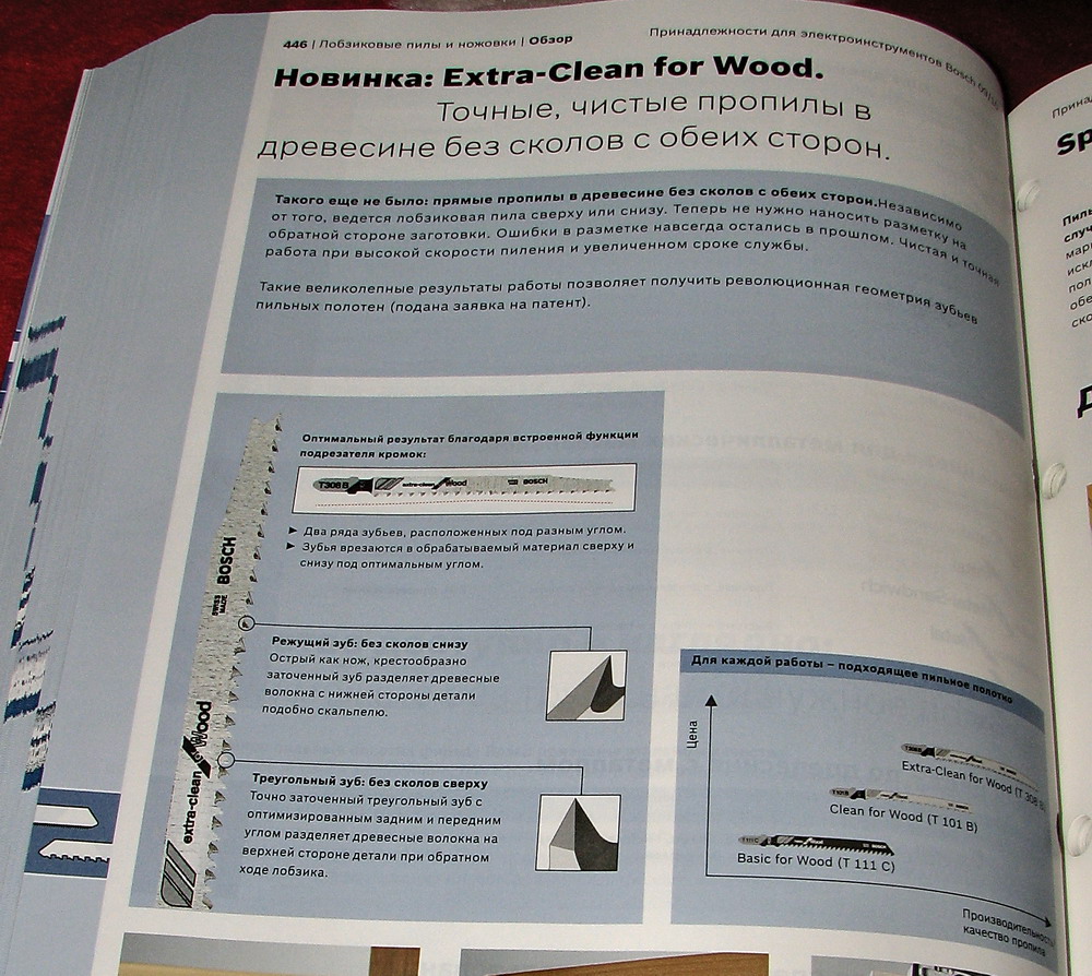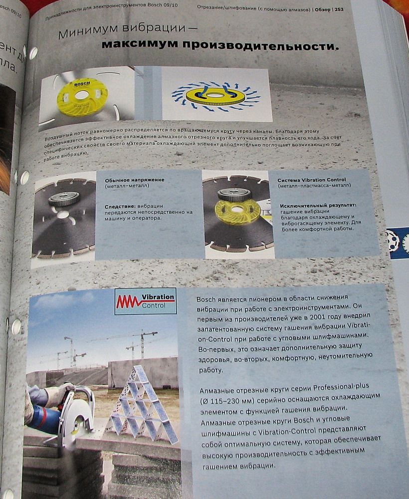 Сегодня разжился каталогом Бош по расходке на 2009/2010 год (фото 1). Толстенная книжица, толще раза в полтора, имеющегося у меня каталога за 2003/2004 год. Полистал. Есть кое что новое, например, специальная шайба для УШМ при работе с алмазными дисками, улучшает охлаждение диска и снижает вибрацию (фото 2). Или новая пилка для лобзов, не дающая сколов на обеих сторонах заготовки (фото 3). В общем, полезная книжица, позволяющая правильно выбрать расходку к определенному материалу. Расходки- море :).