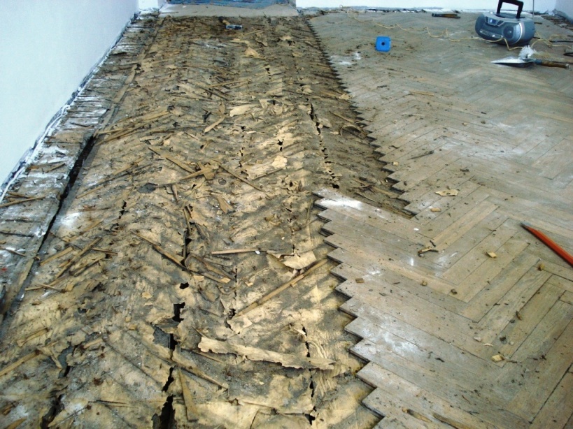 Если нетрудно, прокоментируйте пожалуйста. Как были прибиты плашки к основе, сколькими гвоздиками и какого размера, что за прокладка между паркетом и основой.
