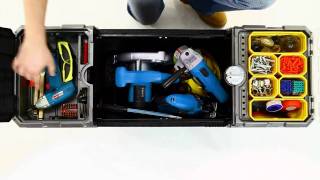 Покупаю дешевые пластиковые многосекционные коробочки для мелочевки, которая на видео справа вверху. Все отвертки, плоскогубцы и т.п. скидываю в вертикальностоящие жесткие, держащие форму, тканевые напоясники, на картинке обем не видно, но он есть, туда можно чуть ли не литровую банку поставить внутрь )) ну и на пояс, если что поцепить. И просто большой ящик, у меня такой ну если на колесиках хочется, можно на колесиках найти.