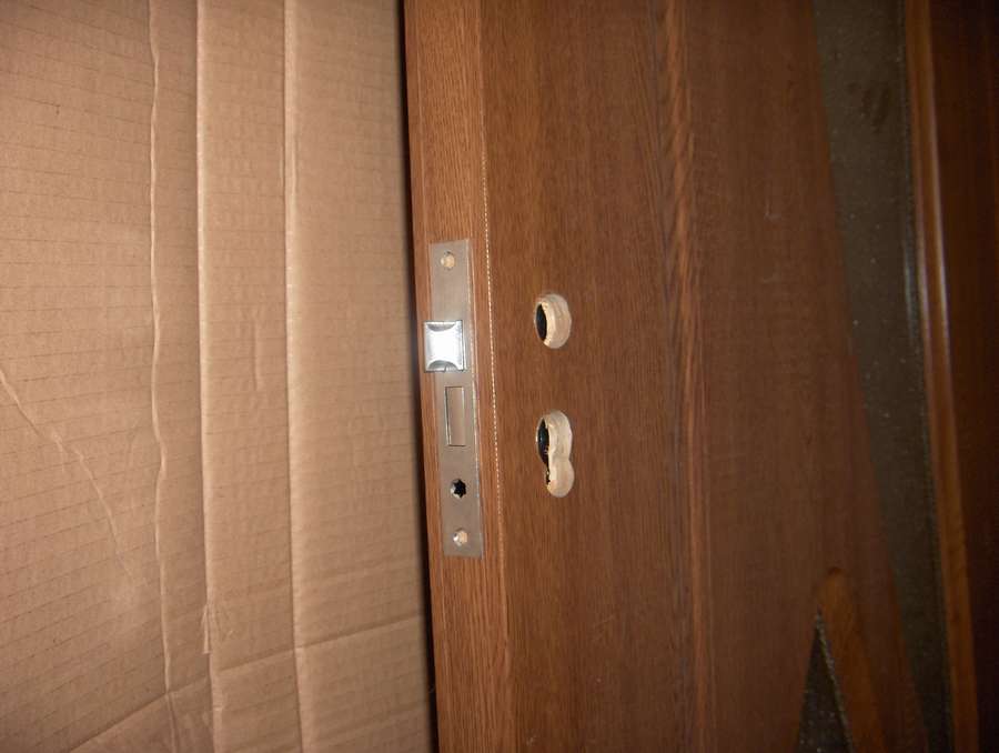 Возьмите толстую фанеру, ширина равная толщине стенки, высота во весь проем. Чем толще фанера (или вообще брус влезет), тем лучше. Главное, чтобы коробка двери вошла. Засверлите в доске отверстий под саморезы с углублениями под потайную головку. Шаг примерно 15-20 см вразбежку (один левее середины, второй правее, опять левее и т.д.). Саморезами по металлу притяните фанеру к профилю.